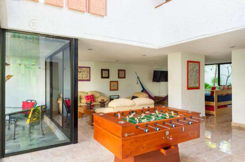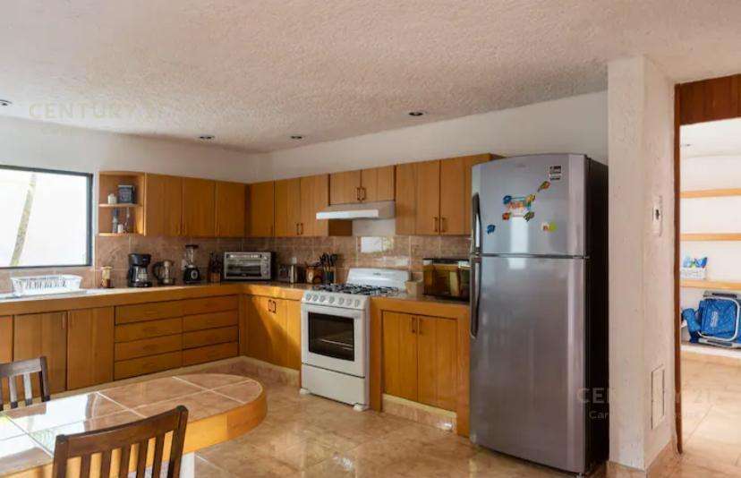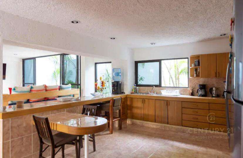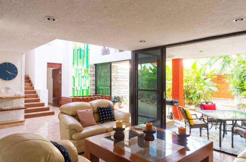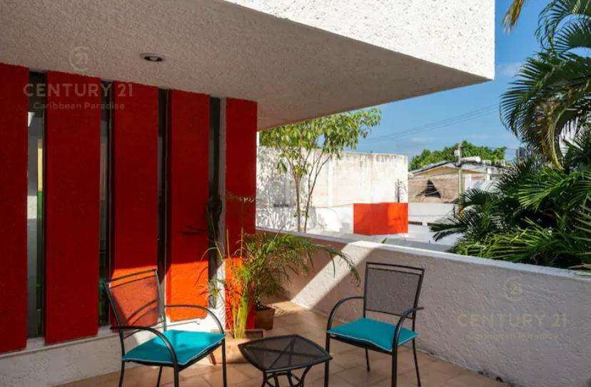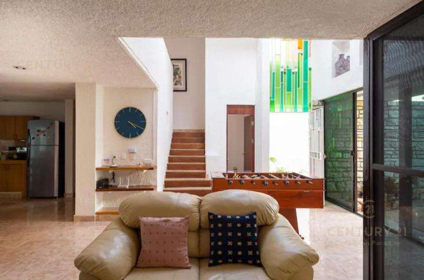 Hermosa y amplia casa estilo contemporaneo ubicada estrategicamente en Cancún (muy cercana a Puerto Cancun) y al parque Km Cero (entrada a Zona Hotelera). Dos plantas, con 3 habitaciones y posibilidad de recibir comodamente hasta 8 personas, con 3 baños completos y un medio baño. Para los inversionistas tiene un magnifico historial de rentas vacacionales, para familias grandes con intención de vivir en Cancún encontrarán esta propiedad muy atractiva. Su diseño le da la versatilidad inclusive para funcionar como un corporativo con oficinas y areas comunes amplias. Cocina y puertas en finas maderas tropicales, garage techado con porton de cierre automatizado para dos o tres vehiculos grandes. Cuarto de servicio convertido en una cómoda habitacion adicional con baño completo. Un espacio en el patio frontal con un área lo suficientemente grande que podria ser destinado para instalar o construir una piscina que cumpla con los requisitos de las mejores y al gusto del nuevo propietario y su familia (se cuenta con imagenes de una casa previamente construida, diseñada por el mismo arquitecto de forma casi identica pero que sí tiene alberca, y que podría servir para visualizar el potencial arquitectónico). Los muebles no están incluidos en el precio de la propiedad, pero si desea el comprador que algunos de ellos permanezcan en la casa habría disposición por parte de la propietaria a incluirlos en la negociación. Con intención de contribuir al cuidado del medio ambiente, la casa cuenta con instalación de paneles solares, que generan más del 50% del nivel de consumo promedio, disminuyendo notablemente el gasto por servicio eléctrico.