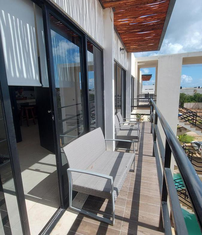 Departamento de 2 recamaras en venta en Tulum, ubicado en La Veleta, una de las zonas con mayor crecimiento y plusvalía en la Riviera Maya. Departamento amueblado y equipado situado en el 4to piso con 2 habitaciones, 2.5 baños, sala, comedor, aire acondicionado, cocina integral, balcón, espacios amplios y distribución funcional, excelente iluminación, ventilación y privacidad. Ideal para inversión y como operación para renta vacacional, cuenta con historial comprobable de ingresos. El edificio cuenta con amenidades como: alberca, camastros, asoleadero, areas verdes, administracion condominal, acceso controlado y seguridad 24/7.