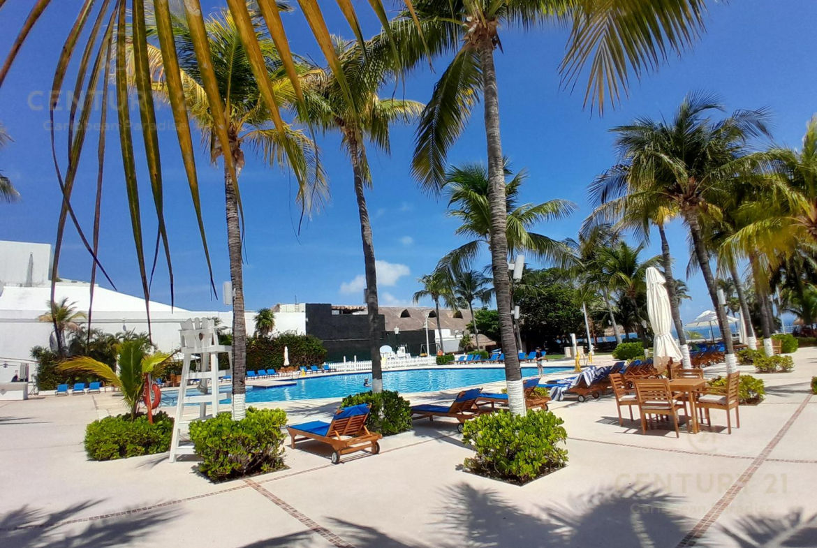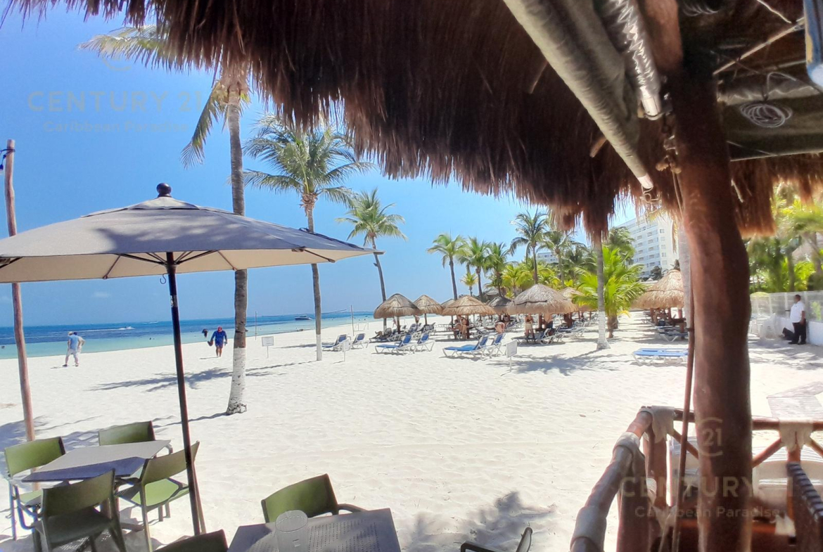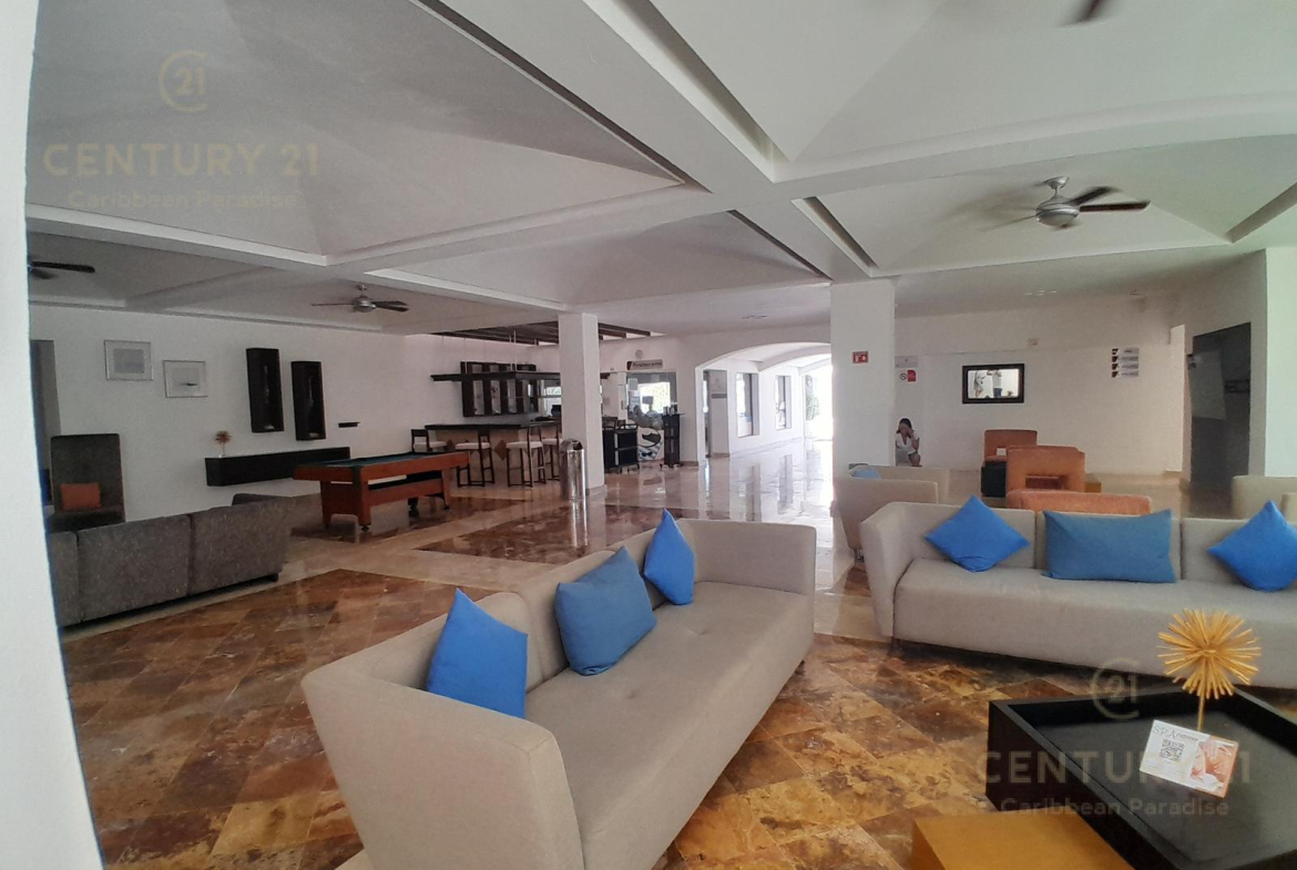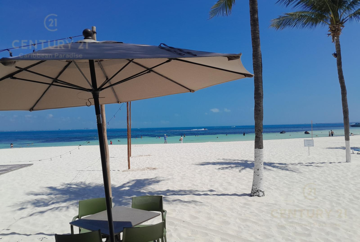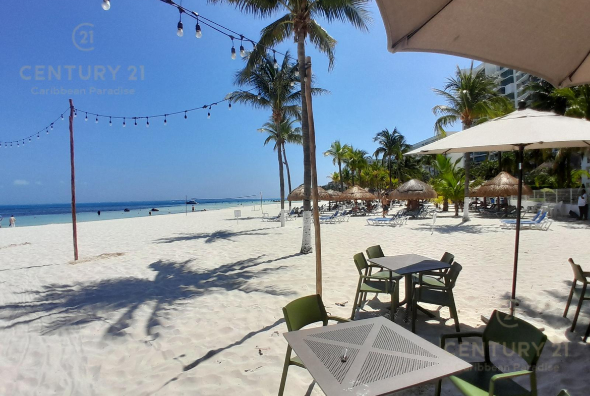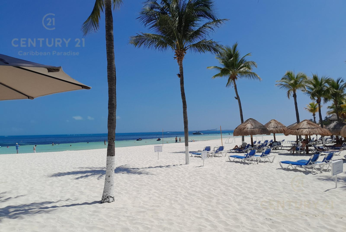 Hermoso apartamento de 1 recamara con acceso directo a la playa… amueblado y decorado con detalles acogedores en un concepto nautico que te hará sentir el máximo confort disfrutando a la vez de la bella naturaleza y energia que irradia el Mar Caribe. Cuenta con una habitacion grande, cocina equipada con todo tipo de enceres, una parrilla de induccion, horno microondas, cubiertos de acero inoxidable y todo lo que se requiere para preparar una comida reparadora despues de estar haciendo deportes acuaticos o simplemente estar relajados en pareja junto al hermoso mar turquesa-azul del mar. La sala y el comedor forman un espacio muy agradable para poder compartir una cena con amigos o simplemente relajarse tomado una copa de vino. Las amenidades con que cuenta el hotel también permiten disfrutar diversas opciones de restaurantes, una inmensa piscina, juegos infantiles, centro de deportes acuáticos, gimnasio y por supuesto una de las playas mas bonitas, amplias y abundantes en arena blanca de Cancún.