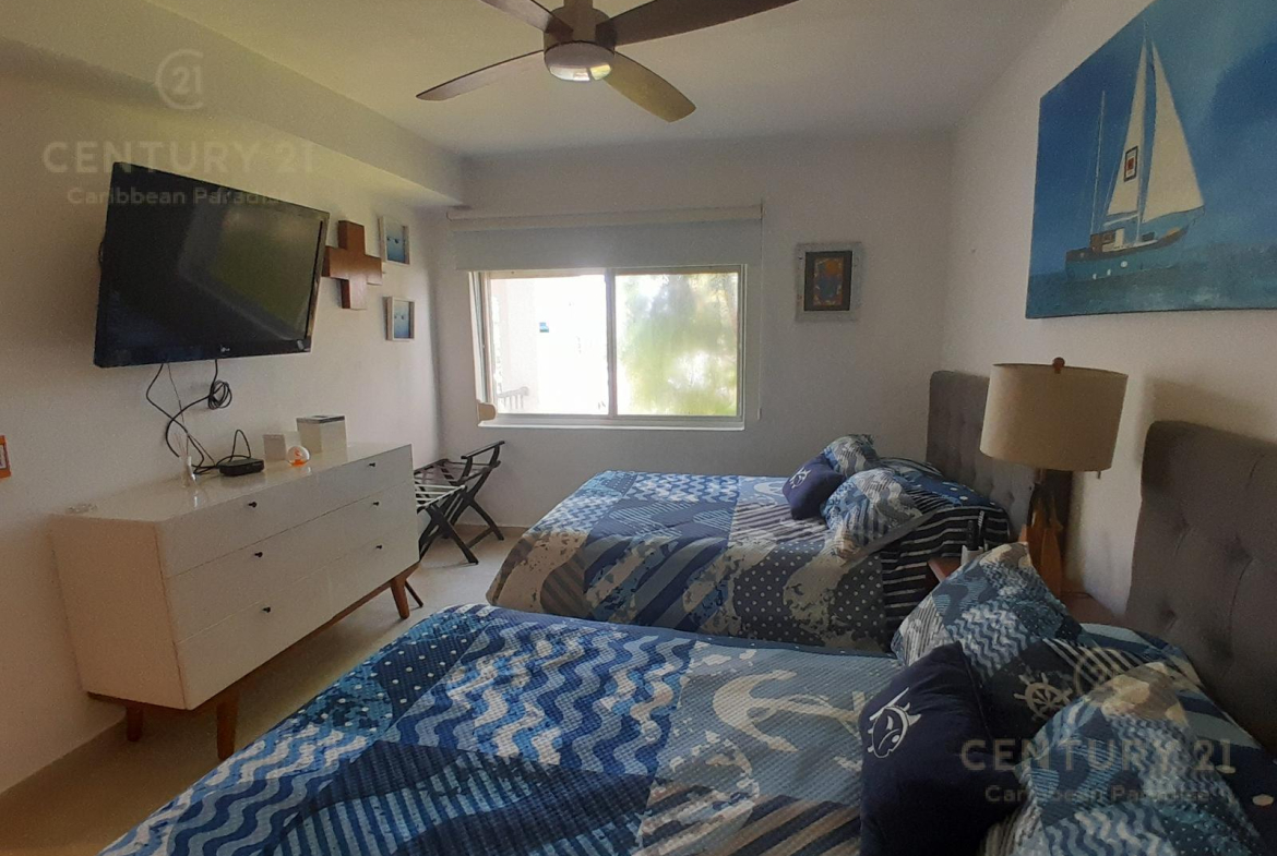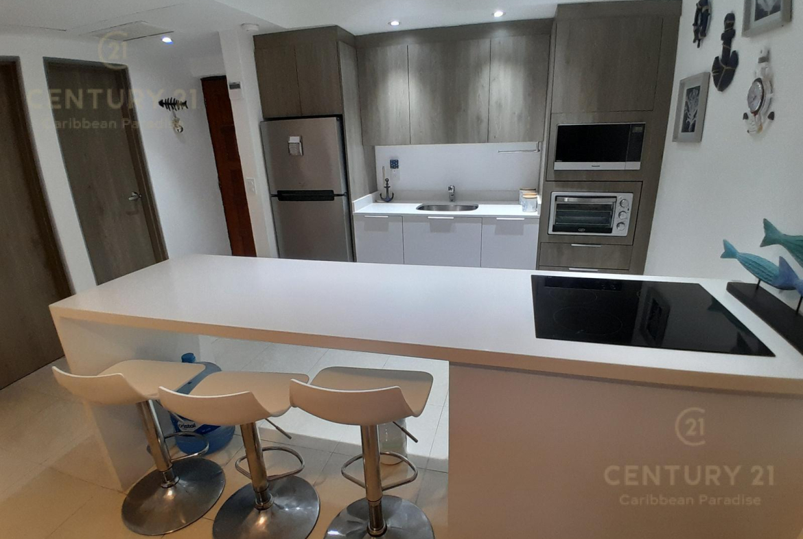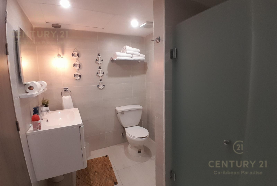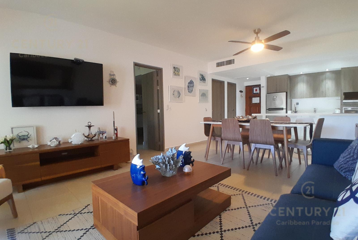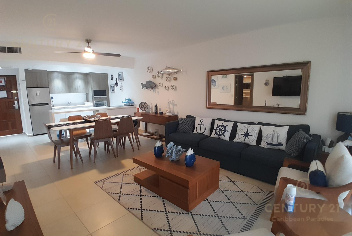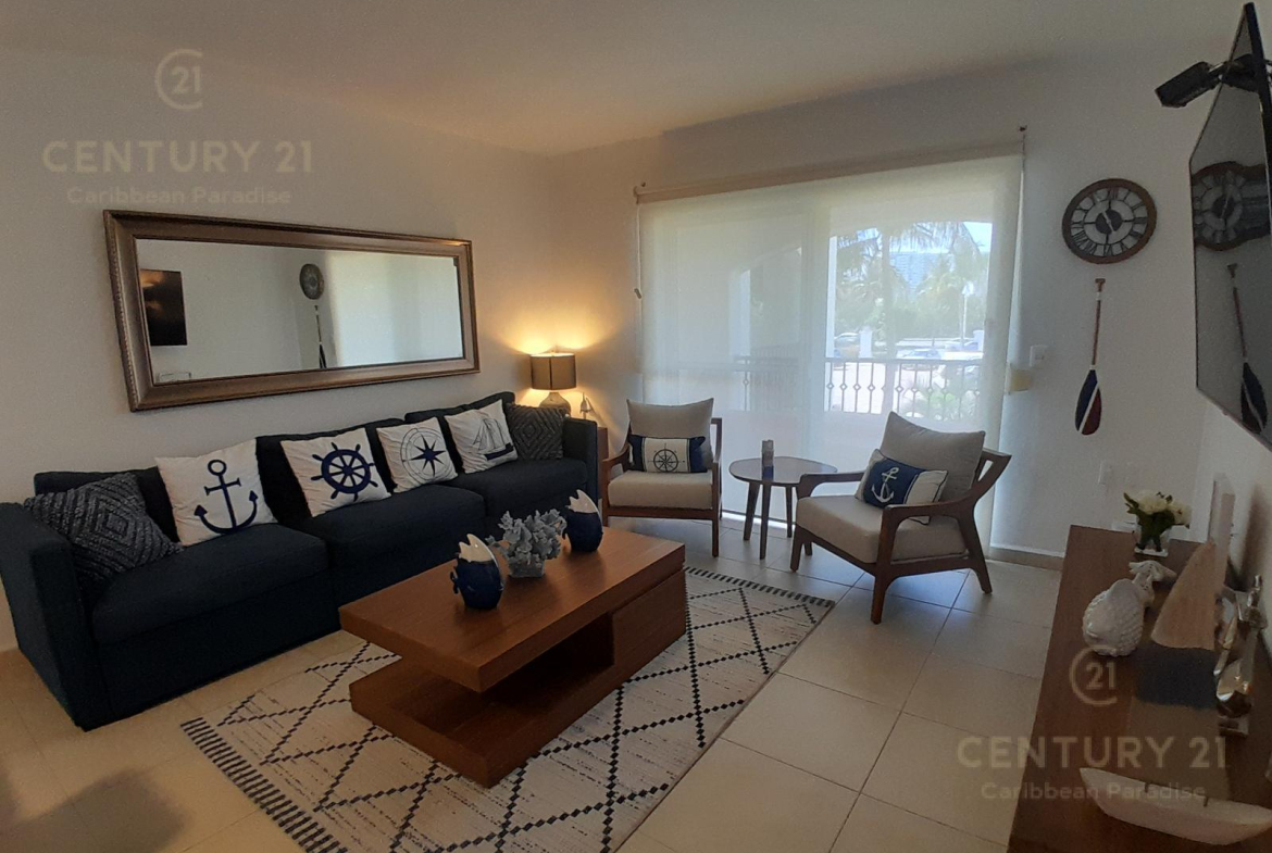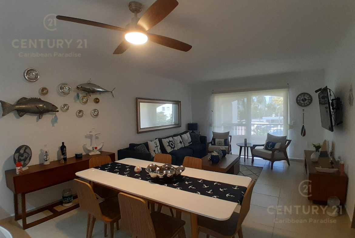 Hermoso apartamento de 1 recamara con acceso directo a la playa… amueblado y decorado con detalles acogedores en un concepto nautico que te hará sentir el máximo confort disfrutando a la vez de la bella naturaleza y energia que irradia el Mar Caribe. Cuenta con una habitacion grande, cocina equipada con todo tipo de enceres, una parrilla de induccion, horno microondas, cubiertos de acero inoxidable y todo lo que se requiere para preparar una comida reparadora despues de estar haciendo deportes acuaticos o simplemente estar relajados en pareja junto al hermoso mar turquesa-azul del mar. La sala y el comedor forman un espacio muy agradable para poder compartir una cena con amigos o simplemente relajarse tomado una copa de vino. Las amenidades con que cuenta el hotel también permiten disfrutar diversas opciones de restaurantes, una inmensa piscina, juegos infantiles, centro de deportes acuáticos, gimnasio y por supuesto una de las playas mas bonitas, amplias y abundantes en arena blanca de Cancún.