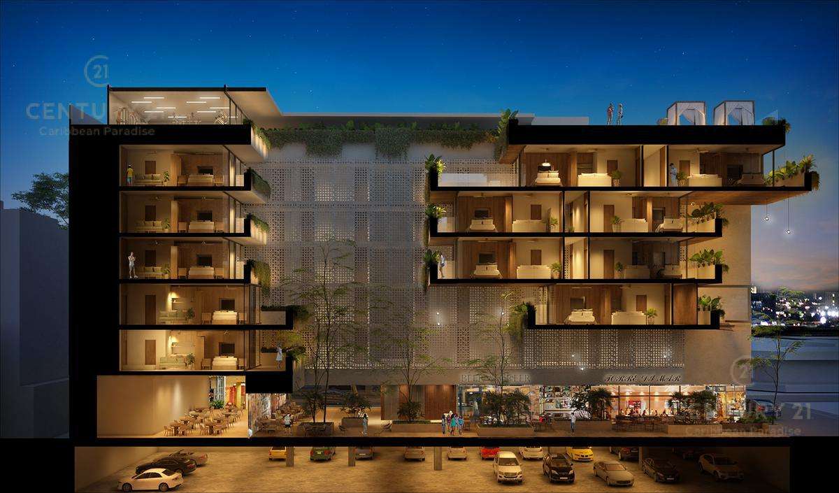 Bellos studios en venta en lujoso condominio de Playa del Carmen, a unos cuantos metros del mar y en una zona comercial. El condominio cuenta con 6 niveles y 114 Unidades (tipo Studio).