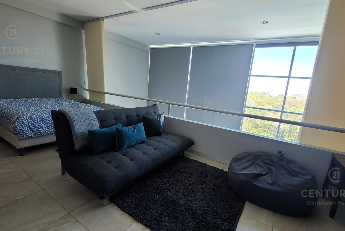 Departamento de 1 recamara tipo loft en venta en Condominio Triumph Tower en frente de Centro Maya en Playa del Carmen.
