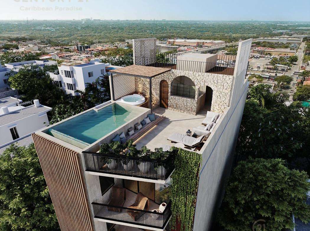 En venta amplios departamentos de 2 recámaras, 2 baños, sala-comedor, cocina integral, cuarto de lavando y terraza, en el centro de Playa de Carmen y en una zona de alta plusvalía, con amenidades exclusivas y cerca del mar.