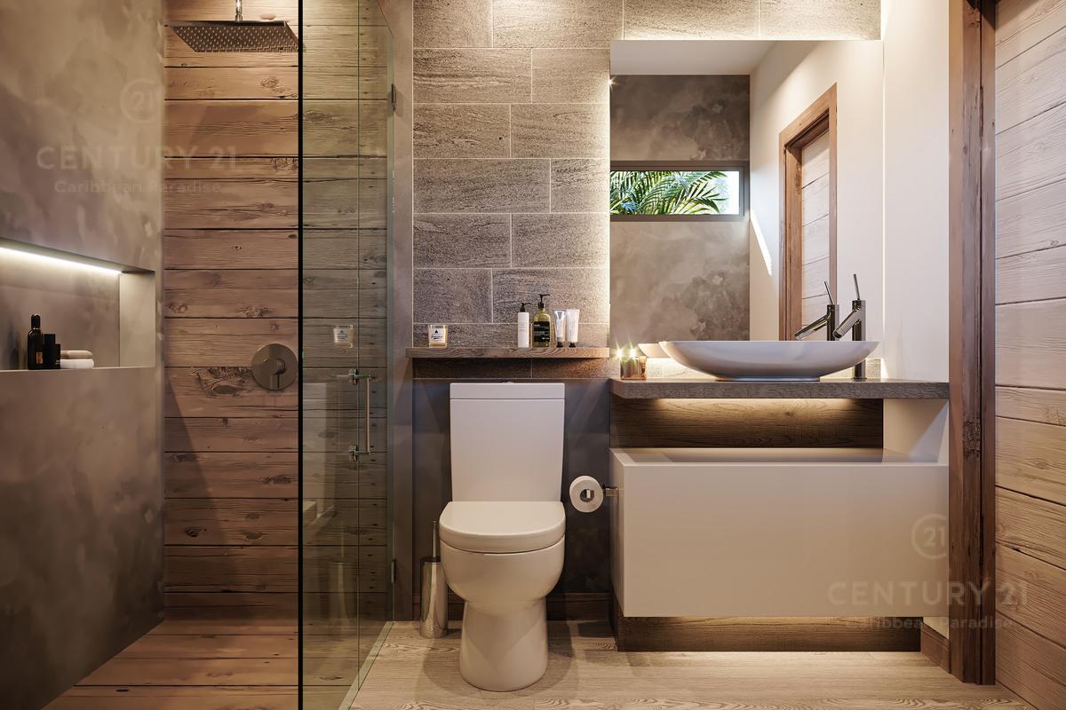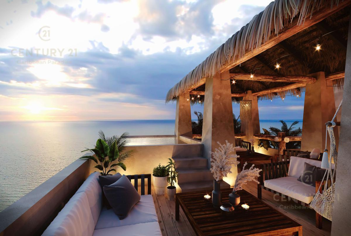 Cuenta con amenidades como: gimnasio, kids club, lobby, deck con palapa, área para asoleadero, amplia alberca, terraza con vista al mar, área para bicicletas, yoga room, lavandería, jardín para perros, espacio para asador, elevadores, acceso privado al mar y área de adultos.