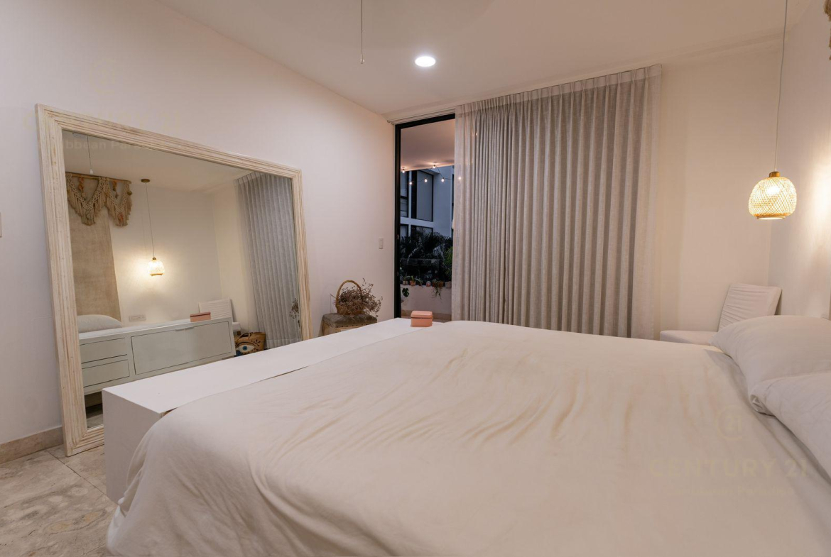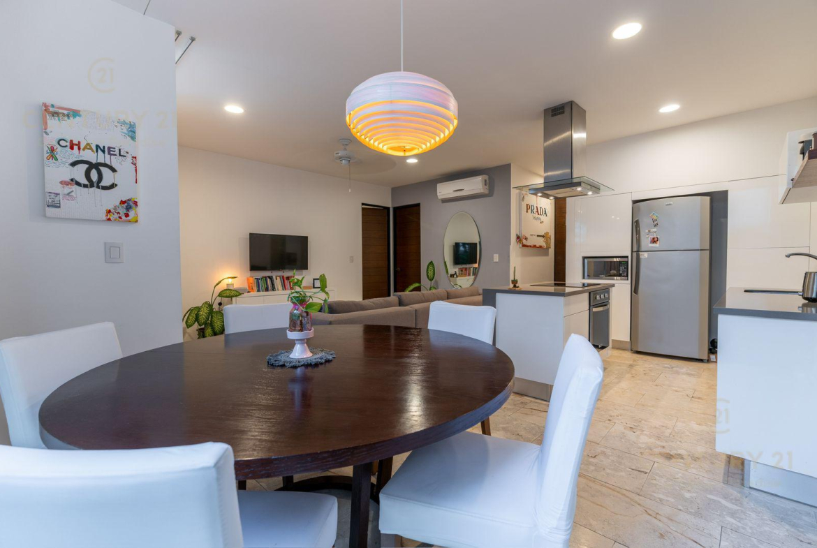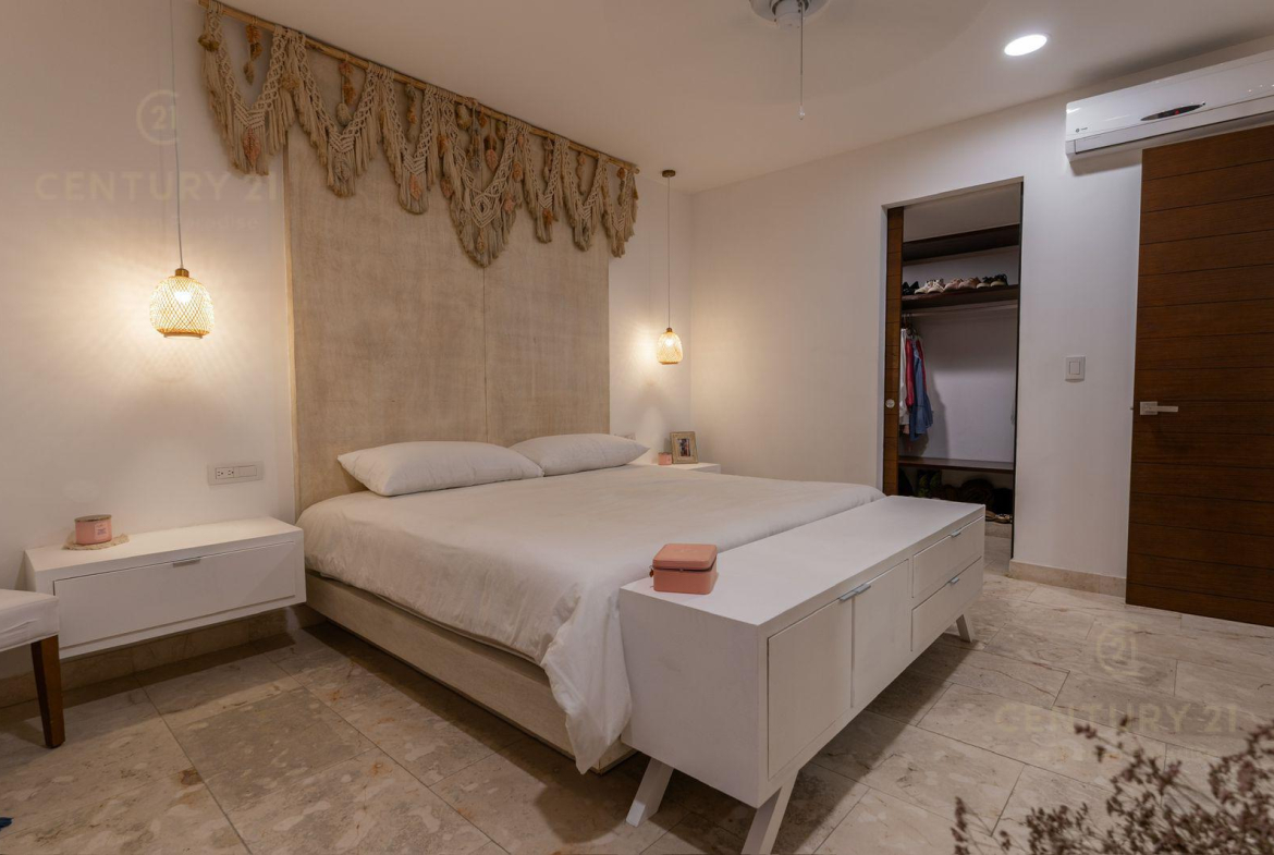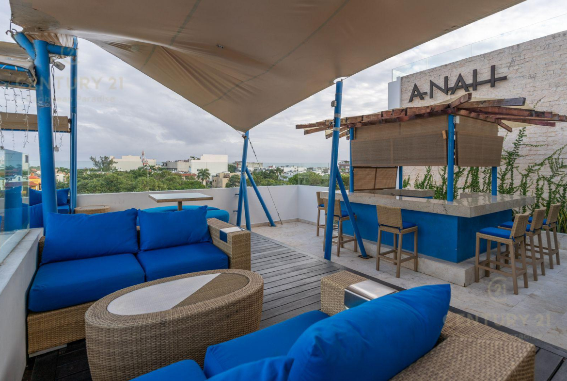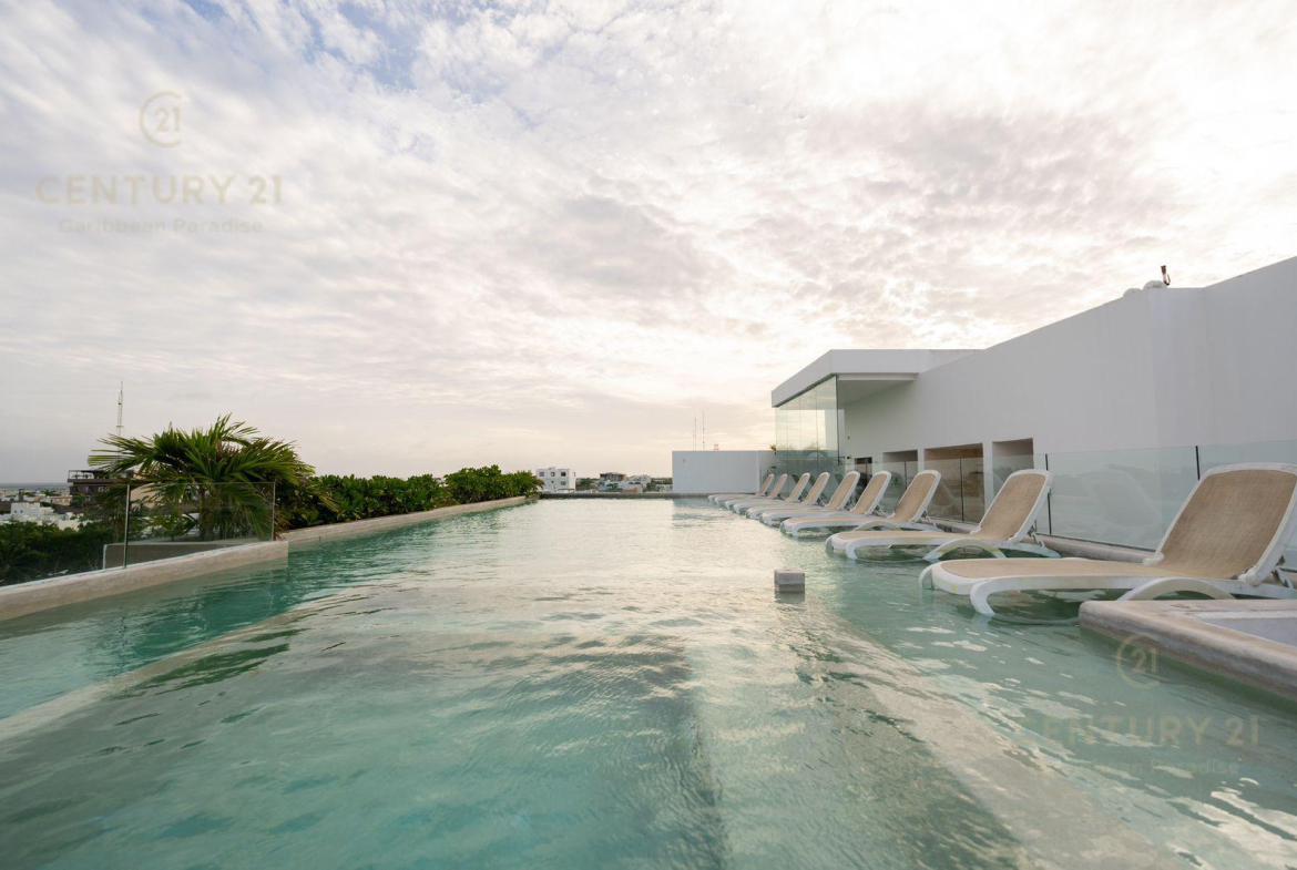 Venta Hermoso Departamento ubicado en el centro de uno de los destinos vacacionales más reconocidos del país, Playa del Carmen. A tan solo 9 minutos de la playa se encuentra este magnífico inmueble, visualizate vivir ahí y ver cada día el hermoso amanecer o atardecer desde el Rooftop con una alberca infinity de 19 metros de largo o generar ingresos cuando no lo ocupes.