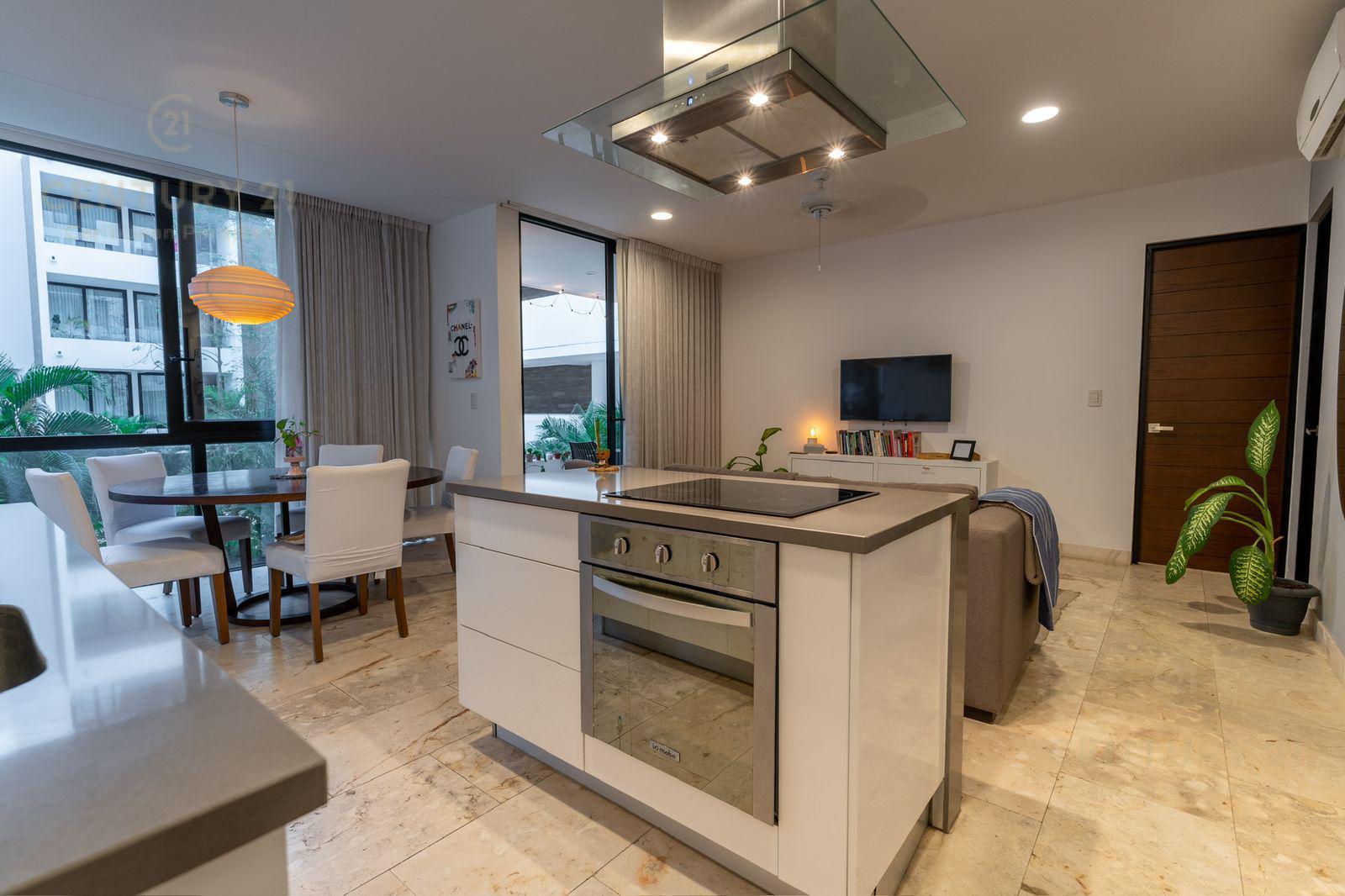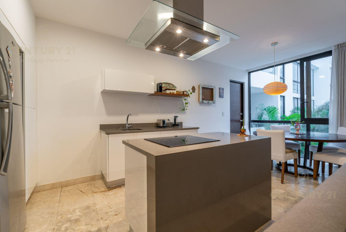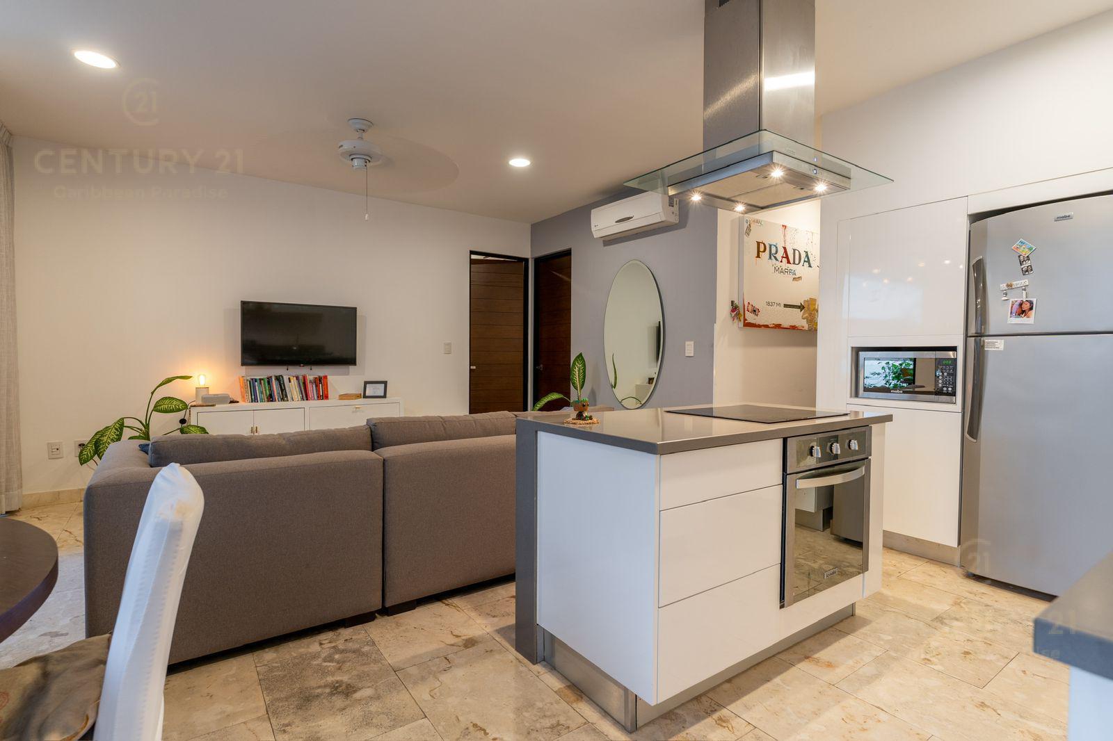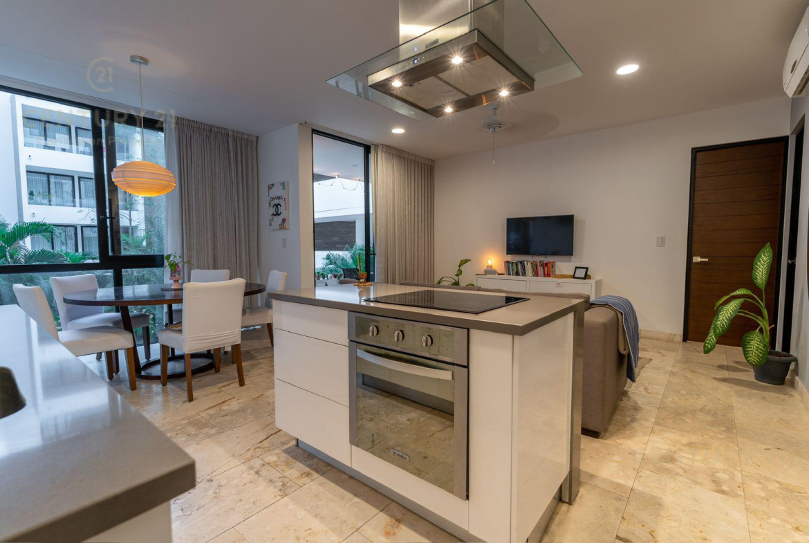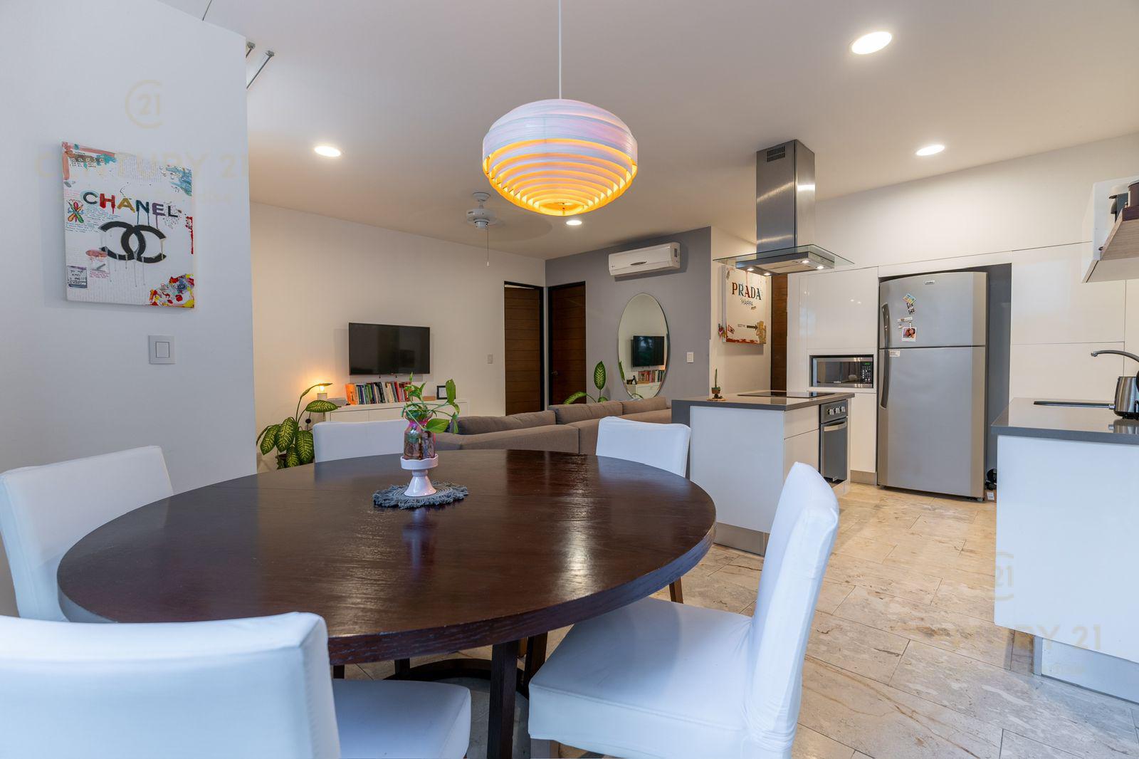 Venta Hermoso Departamento ubicado en el centro de uno de los destinos vacacionales más reconocidos del país, Playa del Carmen. A tan solo 9 minutos de la playa se encuentra este magnífico inmueble, visualizate vivir ahí y ver cada día el hermoso amanecer o atardecer desde el Rooftop con una alberca infinity de 19 metros de largo o generar ingresos cuando no lo ocupes.