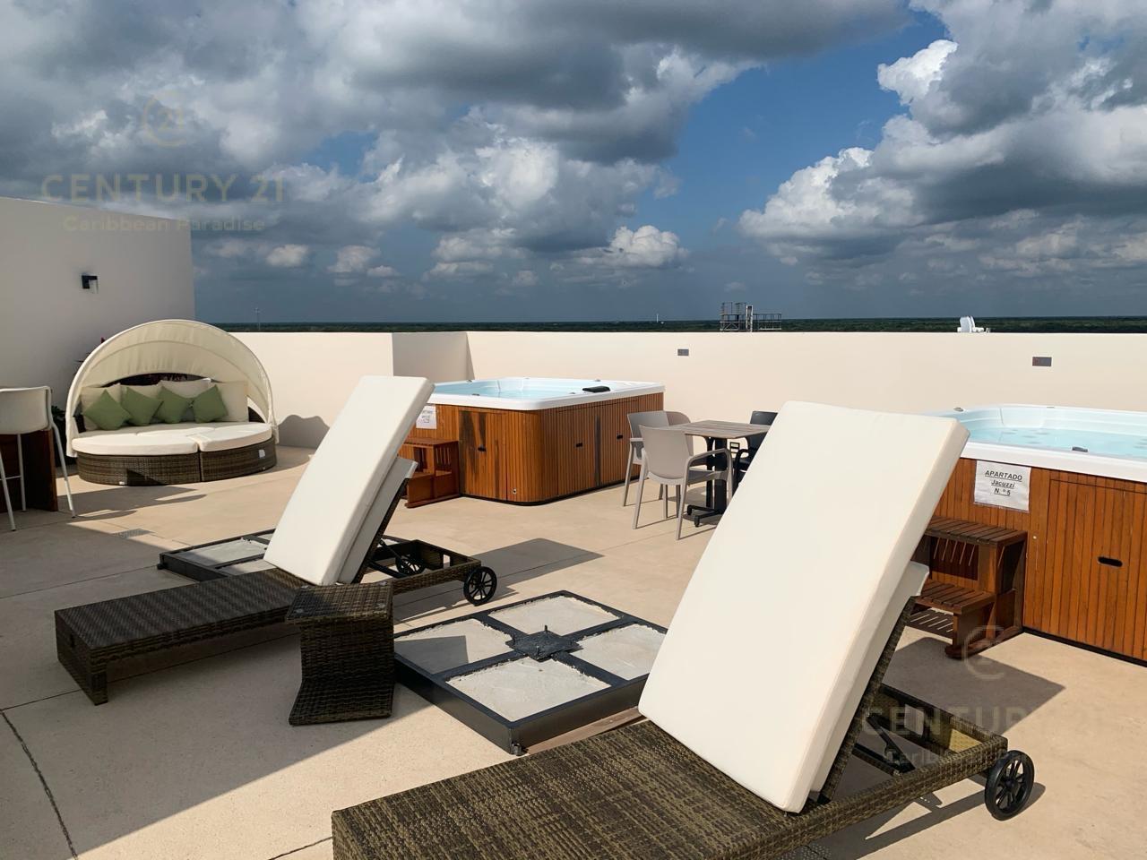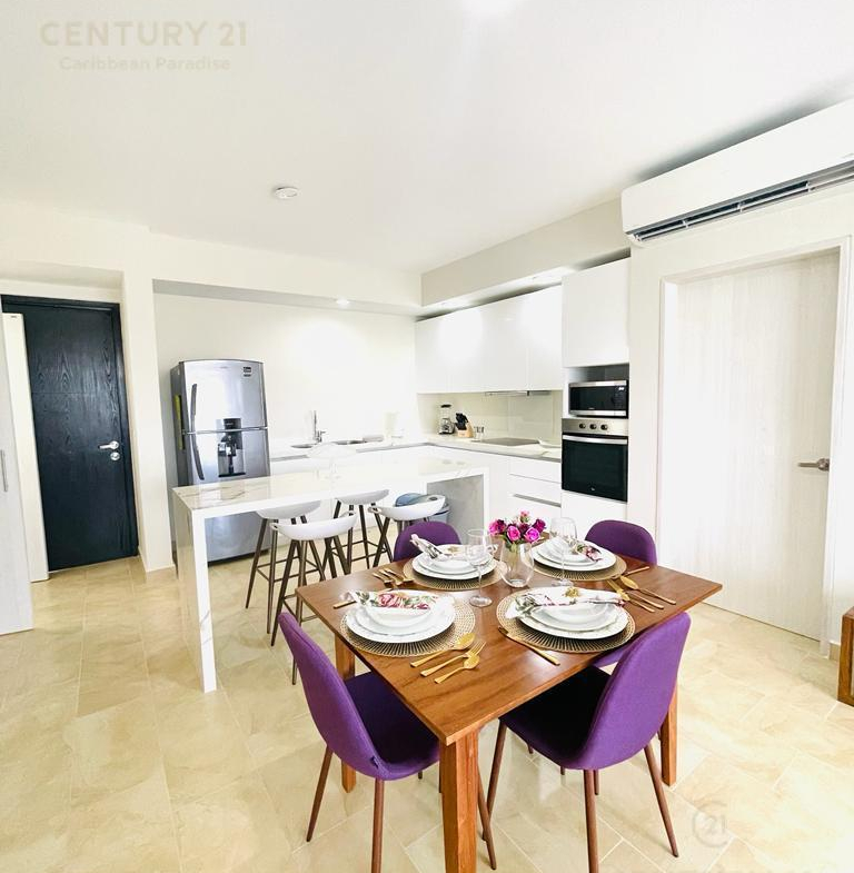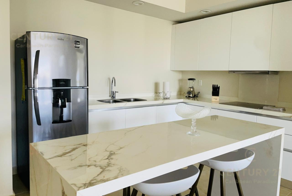 Se vende departamento en Ciudad Mayakoba, ubicado En el 5to nivel, en la última planta del edificio, lo que le otorga vistas panorámicas espectaculares. La propiedad cuenta con una superficie de casi 100 m² y se distribuye en dos dormitorios, dos baños completos, sala-comedor, cocina totalmente equipada, área de lavado y una terraza con vista. El departamento se entrega completamente amueblado y equipado, listo para habitar o generar rentas.