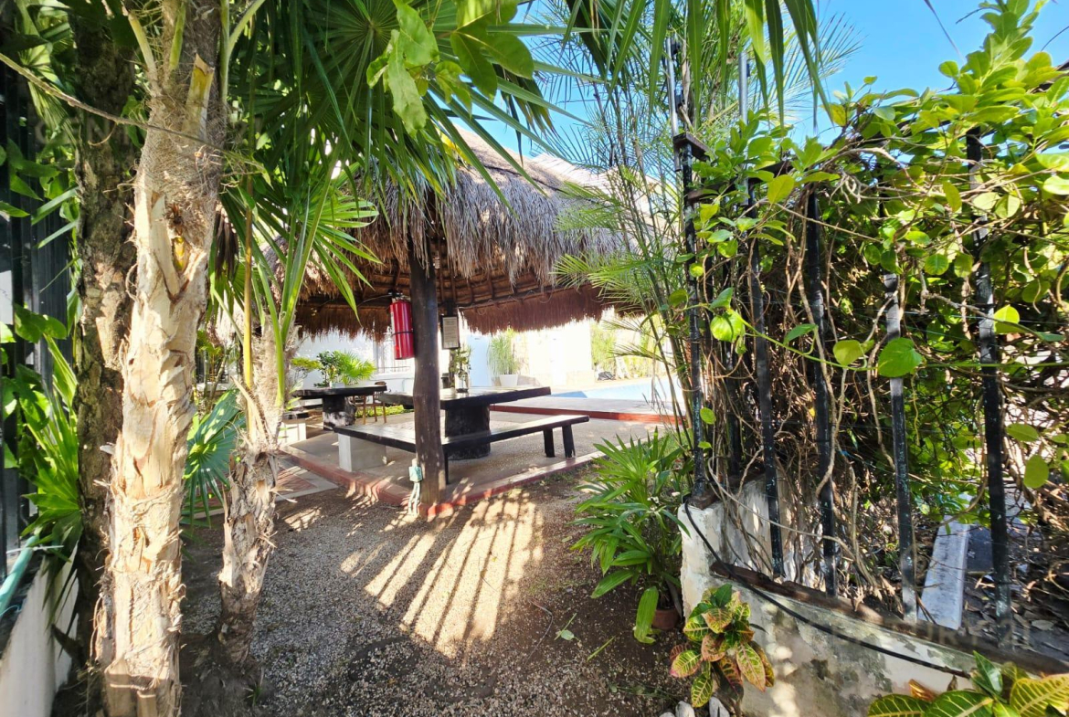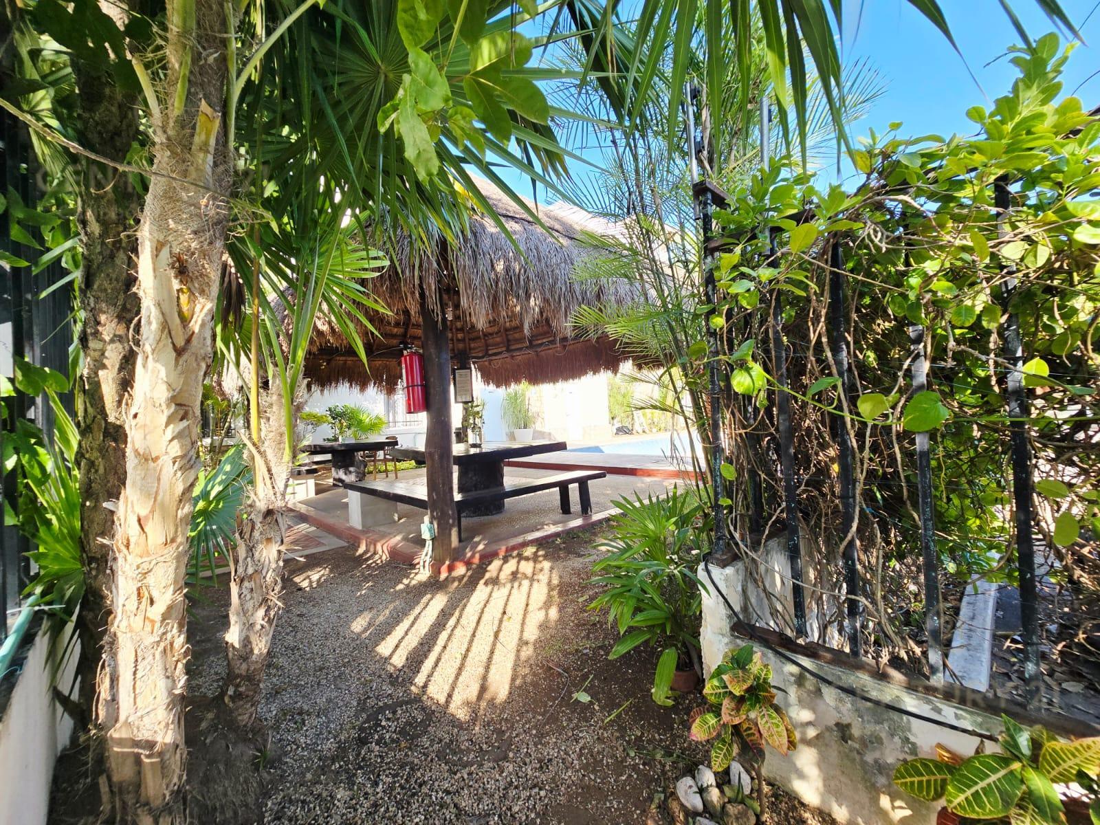 Palapa con mesas y silla