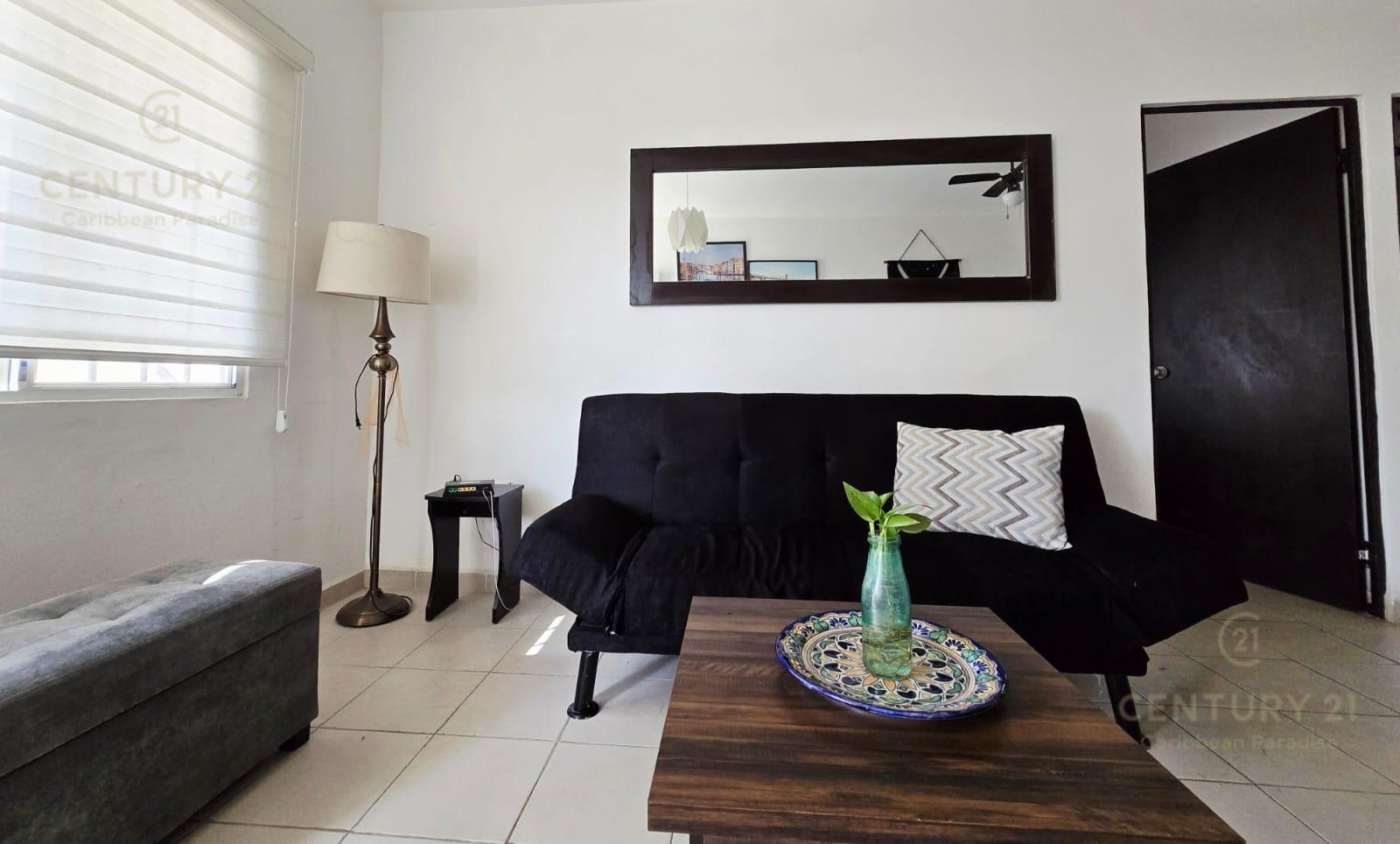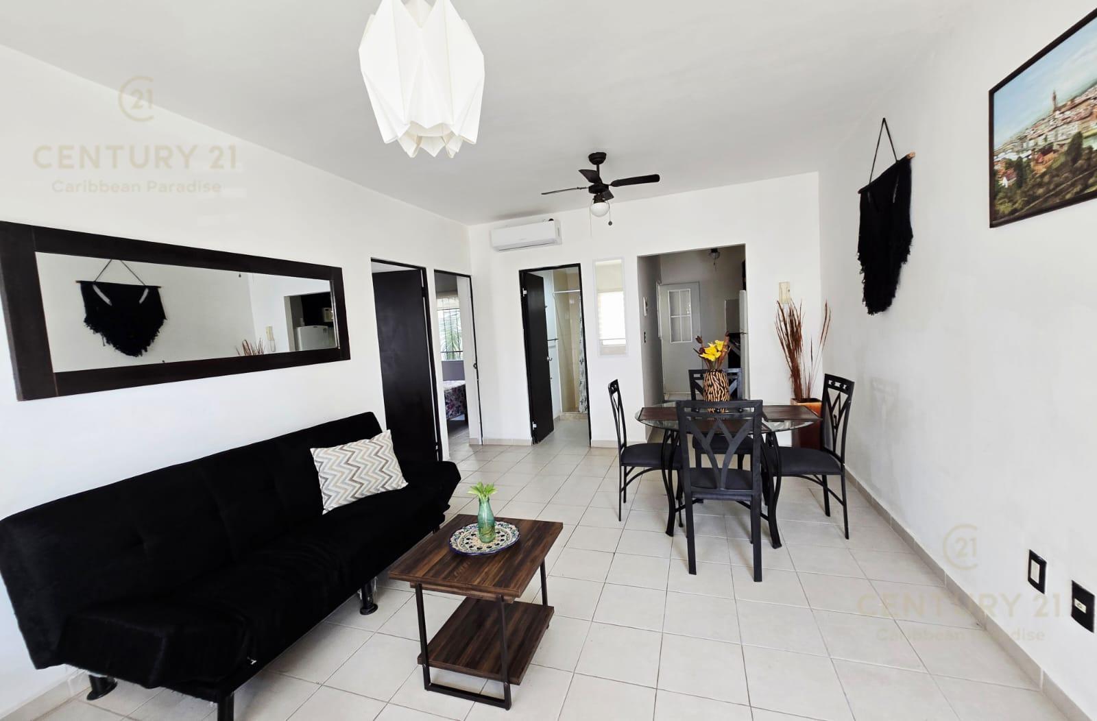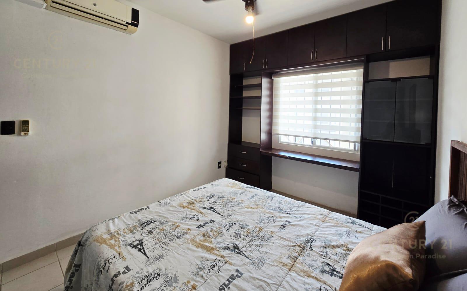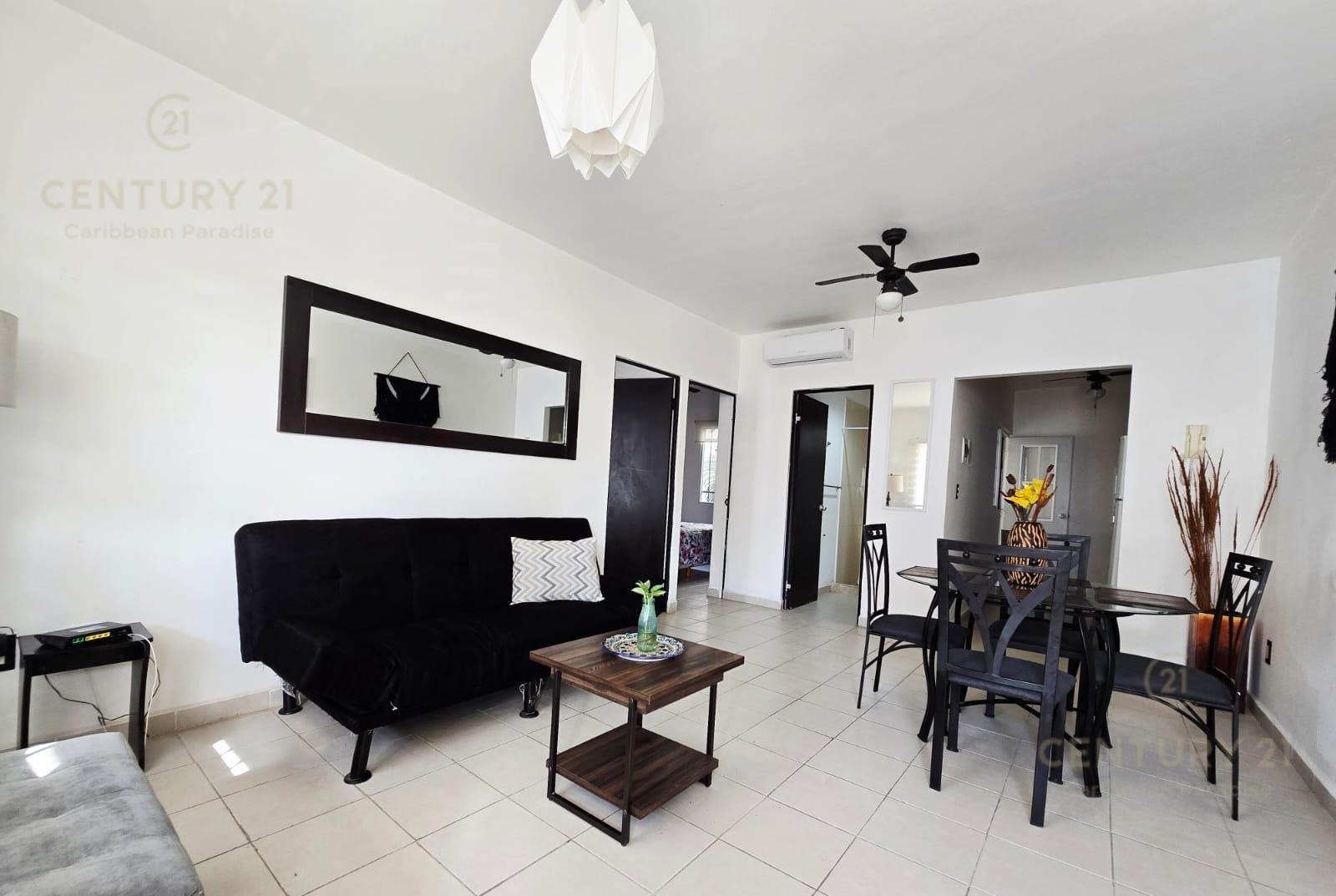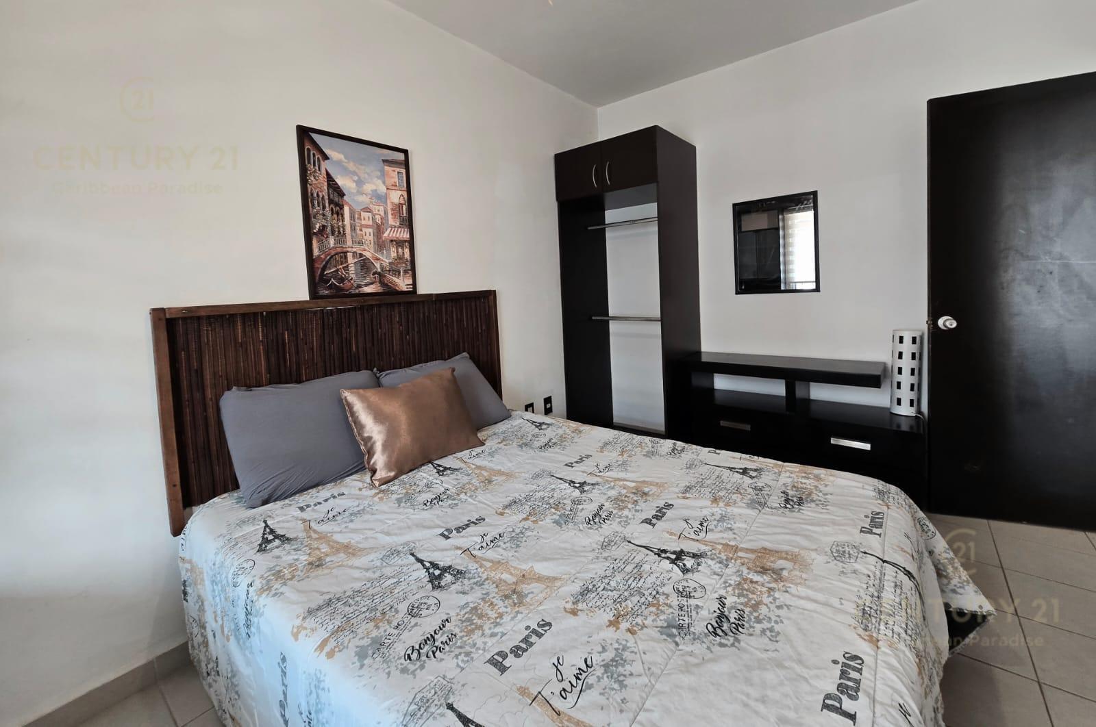 En renta departamento 2 rec. amueblado. Privada Morell, Playa del Carmen P4116
