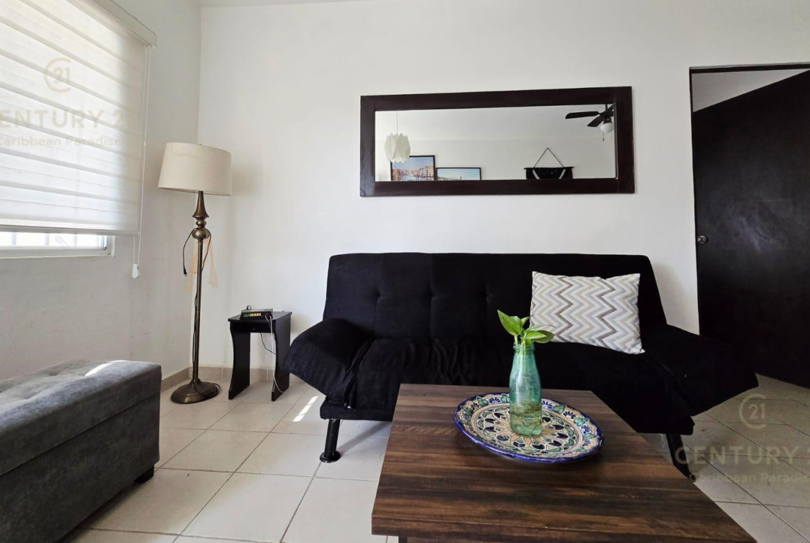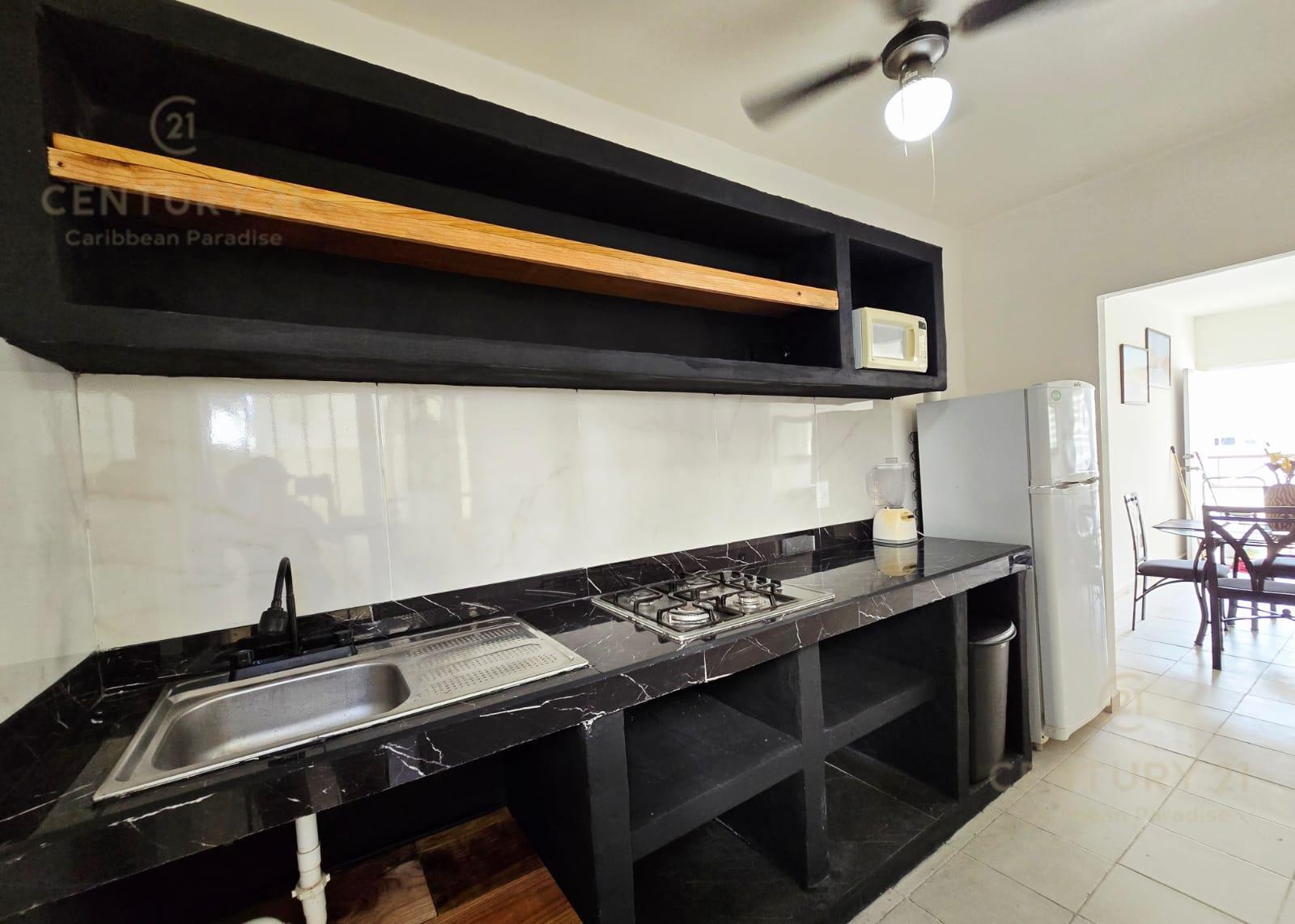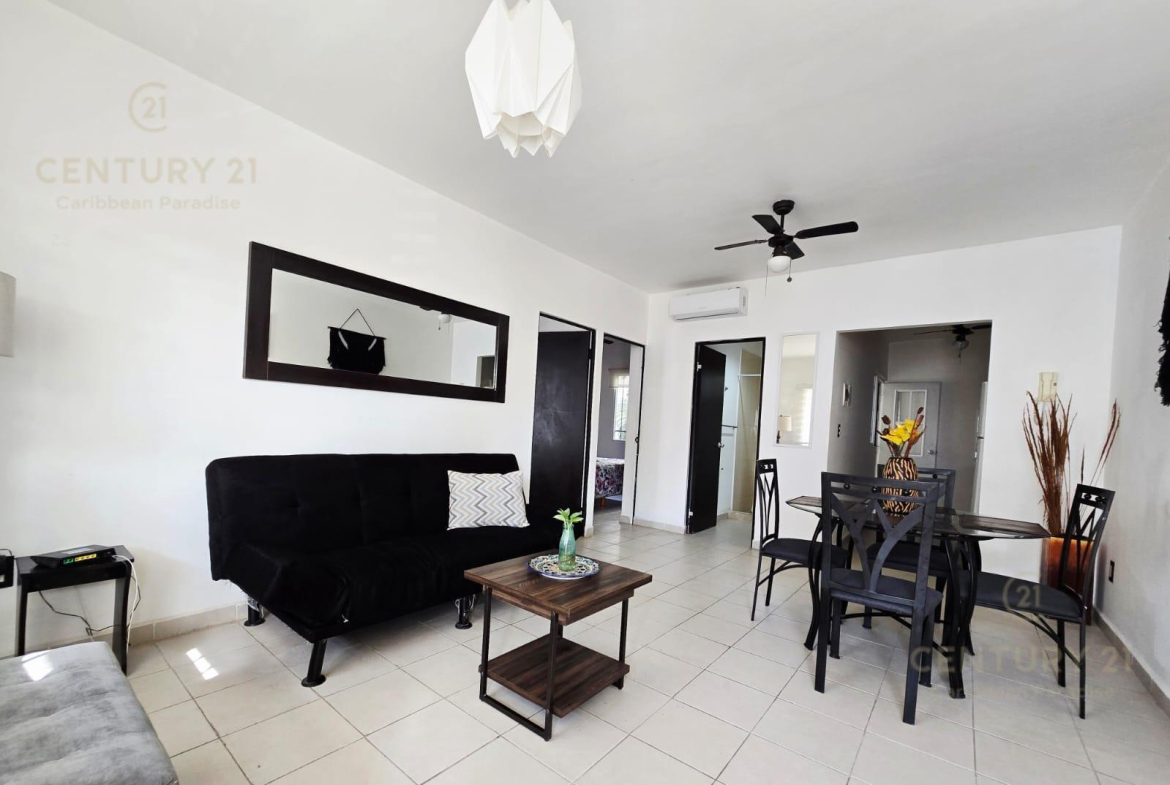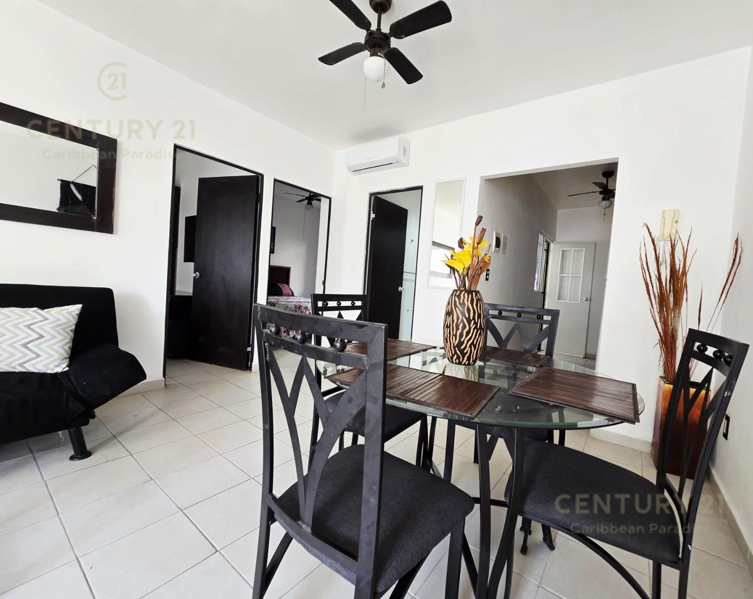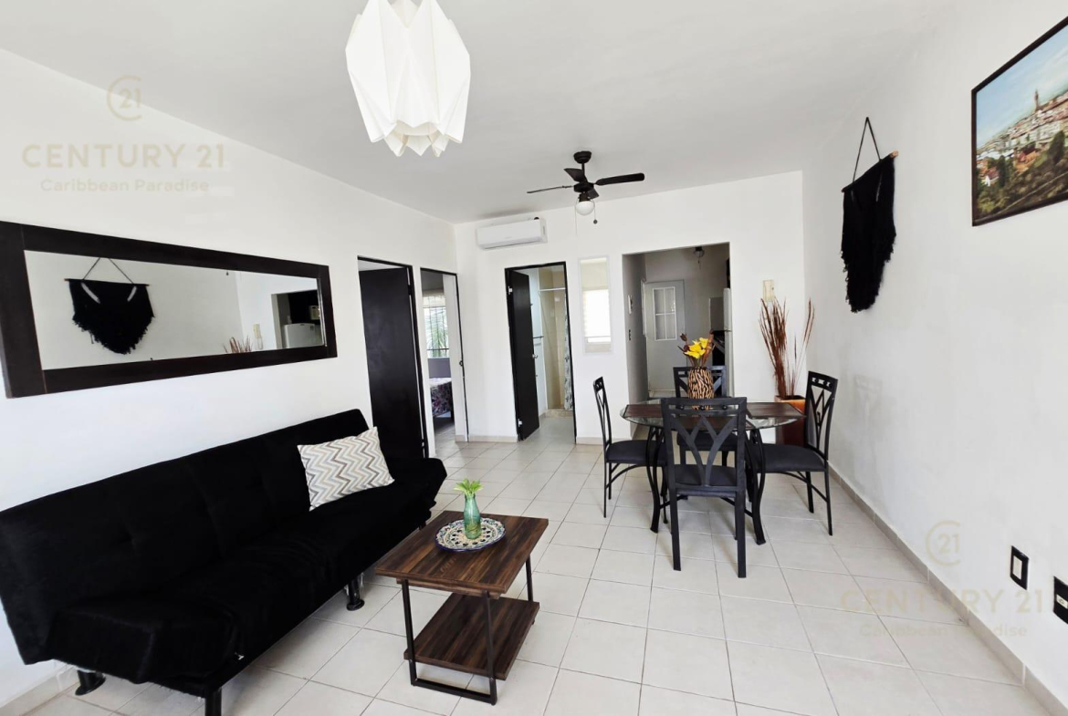 En renta departamento 2 rec. amueblado. Privada Morell, Playa del Carmen P4116