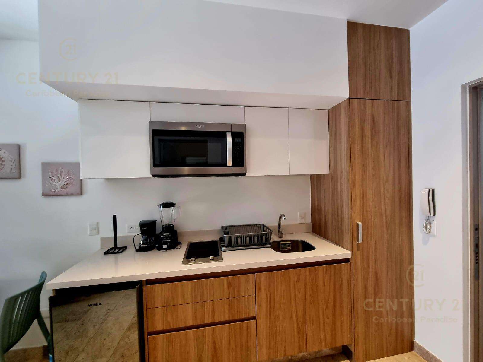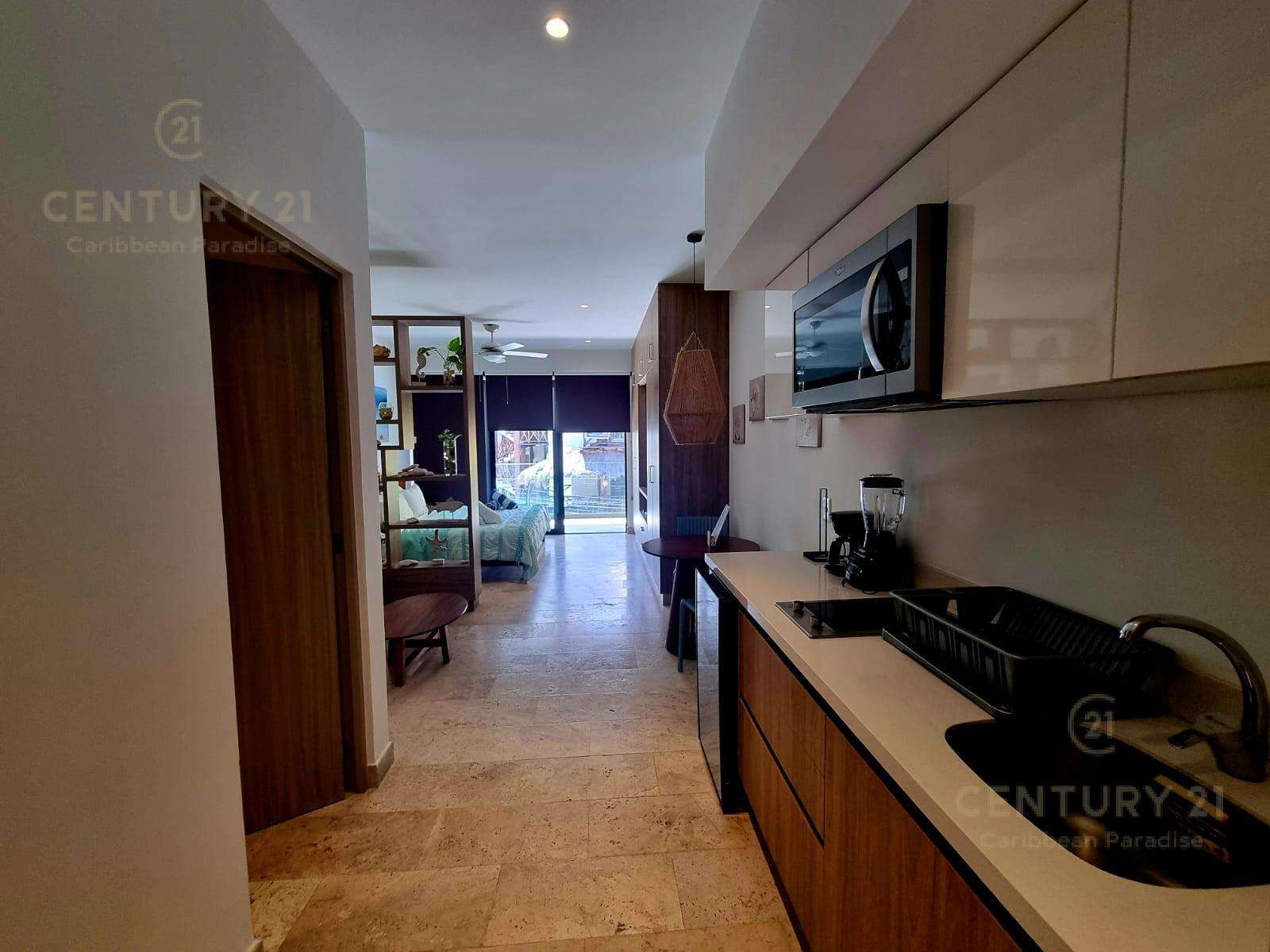 En venta amplio estudio amueblado con terraza, Playa del Carmen P4249