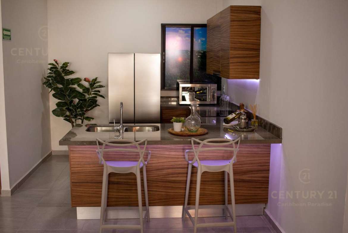 El departamento es totalmente nuevo y cuenta con los mejores acabados en pisos y cocina. Es ideal para inversión debido a que esta permitida la renta vacacional y así mismo se ofrece el servicio de administración.