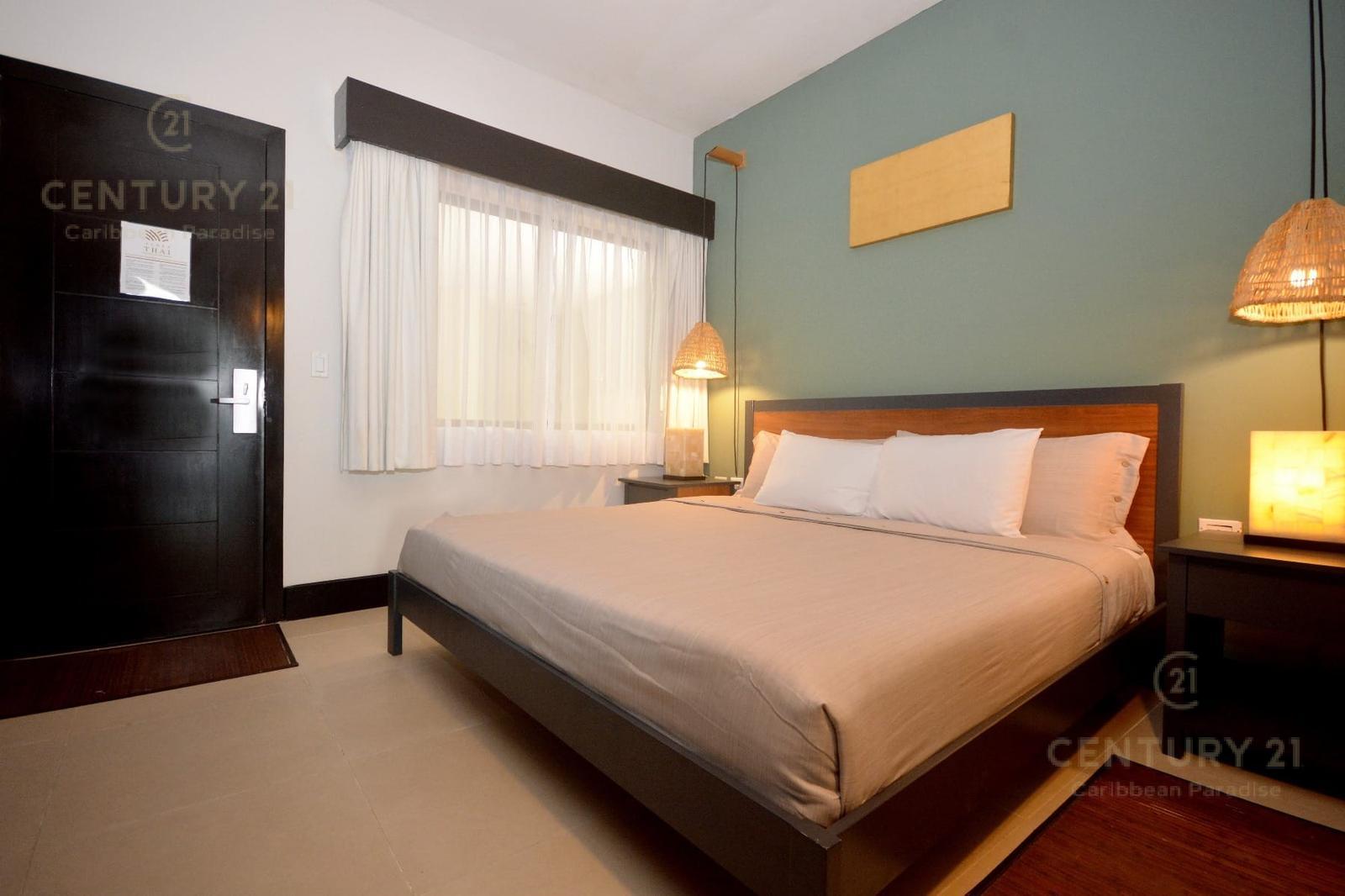 Departamento en venta en Aldea Thai, Playa del Carmen, con 2 recámaras y modalidad lock-off, ideal para inversión en renta vacacional de alta rentabilidad. Ubicado a pasos de Mamitas Beach y la Quinta Avenida, ofrece vista parcial al mar, acabados de mármol y granito, y se entrega amueblado y equipado. Este exclusivo condo hotel combina diseño tailandés-balinés con servicios tipo hotel, brindando una experiencia premium. Cuenta con terraza, espacios amplios y acceso directo a beach clubs. Su ubicación privilegiada en zona turística garantiza alta ocupación y plusvalía en la Riviera Maya.