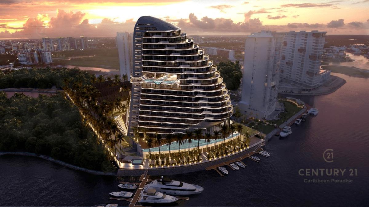 Puerto Cancún ofrece un estilo de vida único, este inigualable departamento pertenece a uno de los edificios con más prestigio en la zona por su detallado estilo con forma de aleta de tiburón.