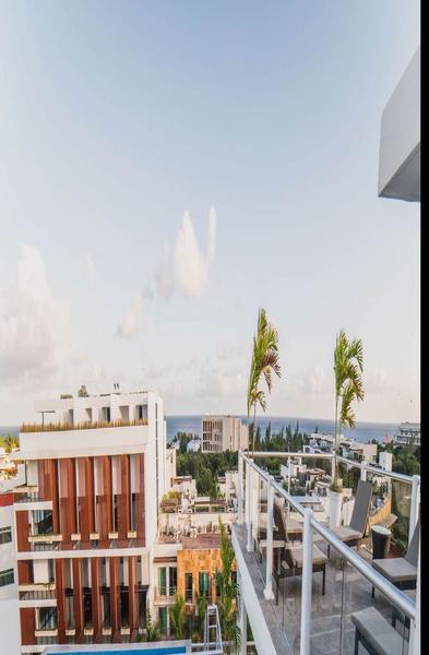En una de las mejores calles de la Quinta Avenida, Estudio a estrenar de 64 m2, muy amplio, en planta baja, en un condominio con elevador, albera vista al mar, solarium, vigilancia, etc. Excelente oportunidad para Renta vacacional!