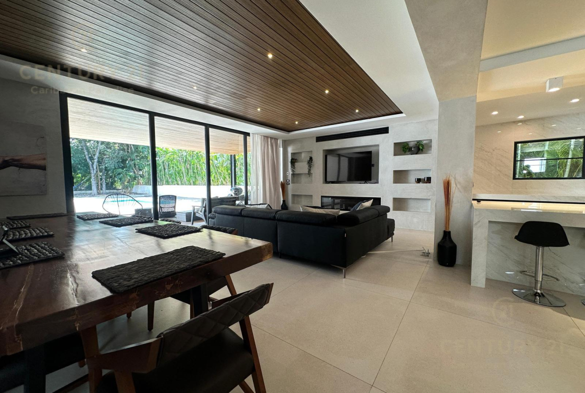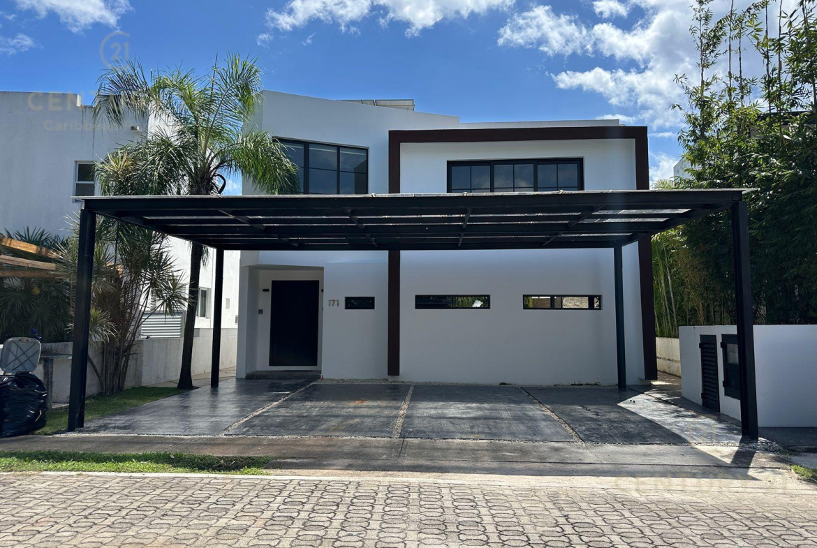 Exclusiva residencia de arquitectura contemporánea, totalmente amueblada y equipada con paneles solares, ubicada en la prestigiosa comunidad cerrada Club Real, Playacar Fase II, una de las zonas residenciales más exclusivas y consolidadas de Playa del Carmen.