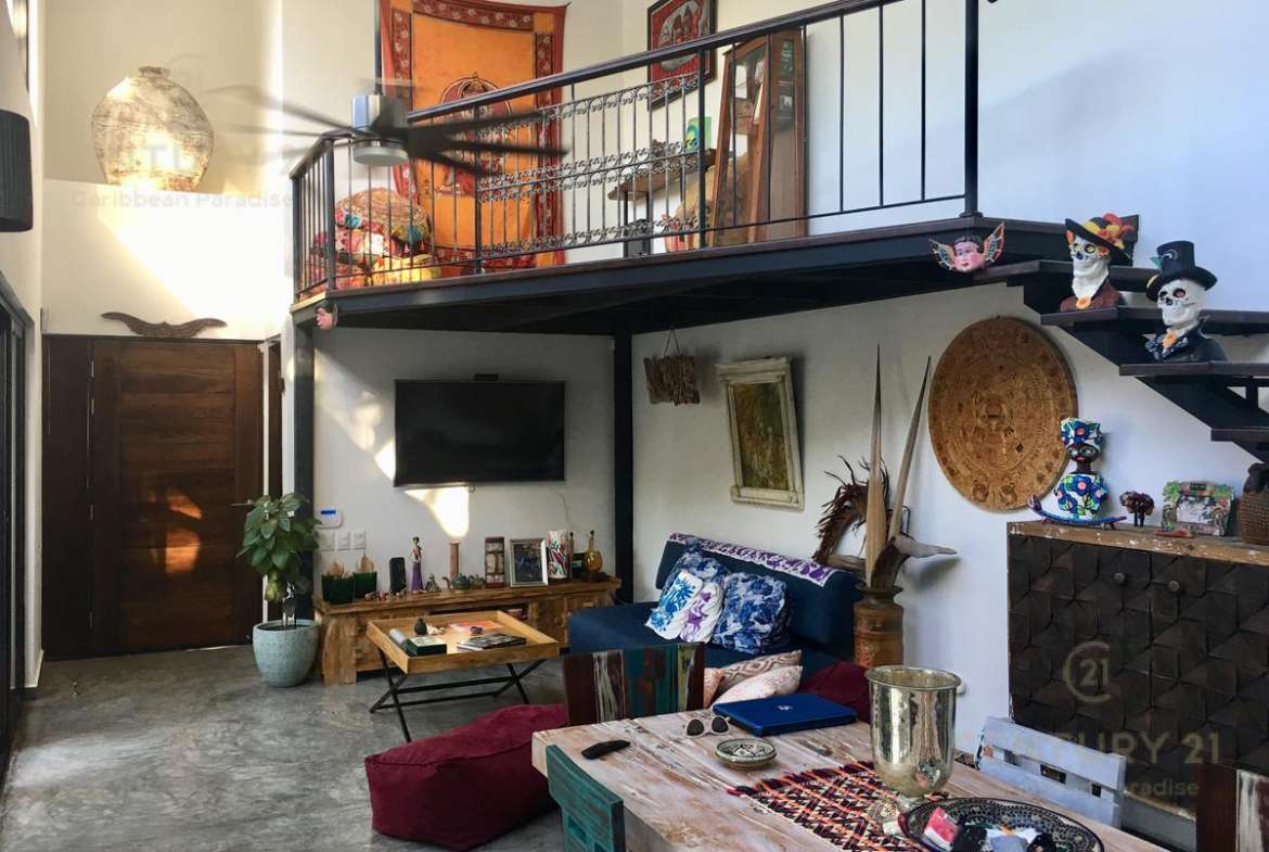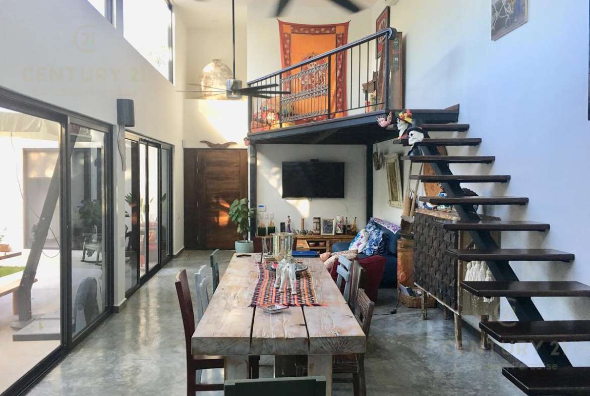 La casa está equipada de un cuarto de servicio y un mezzanine en la sala común con vista a la alberca.