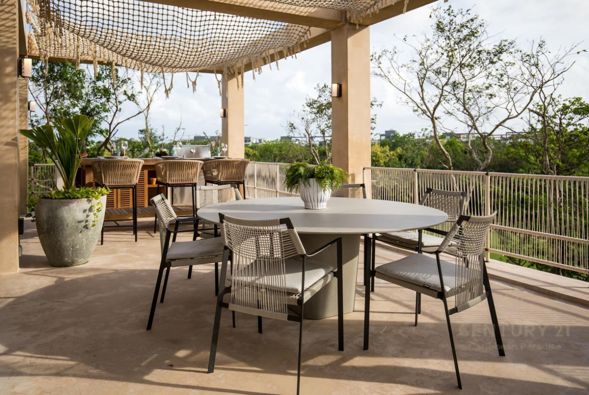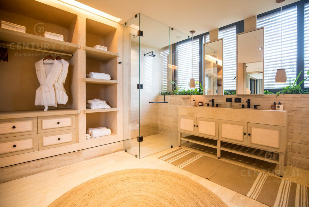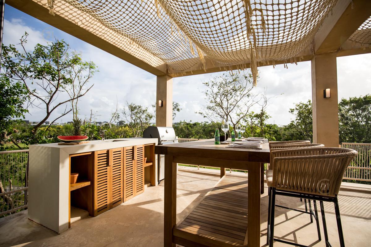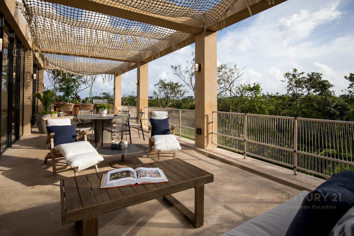 Cuenta con amenidades como salón de usos multiples, tienda de playa, parque acuatico, casa club, tiendas gourmet, tiendas conceptuales, marketplace, lobby, bar lounge, pool bar, estudio de yoga, restaurantes, galleria de arte, gym, spa.