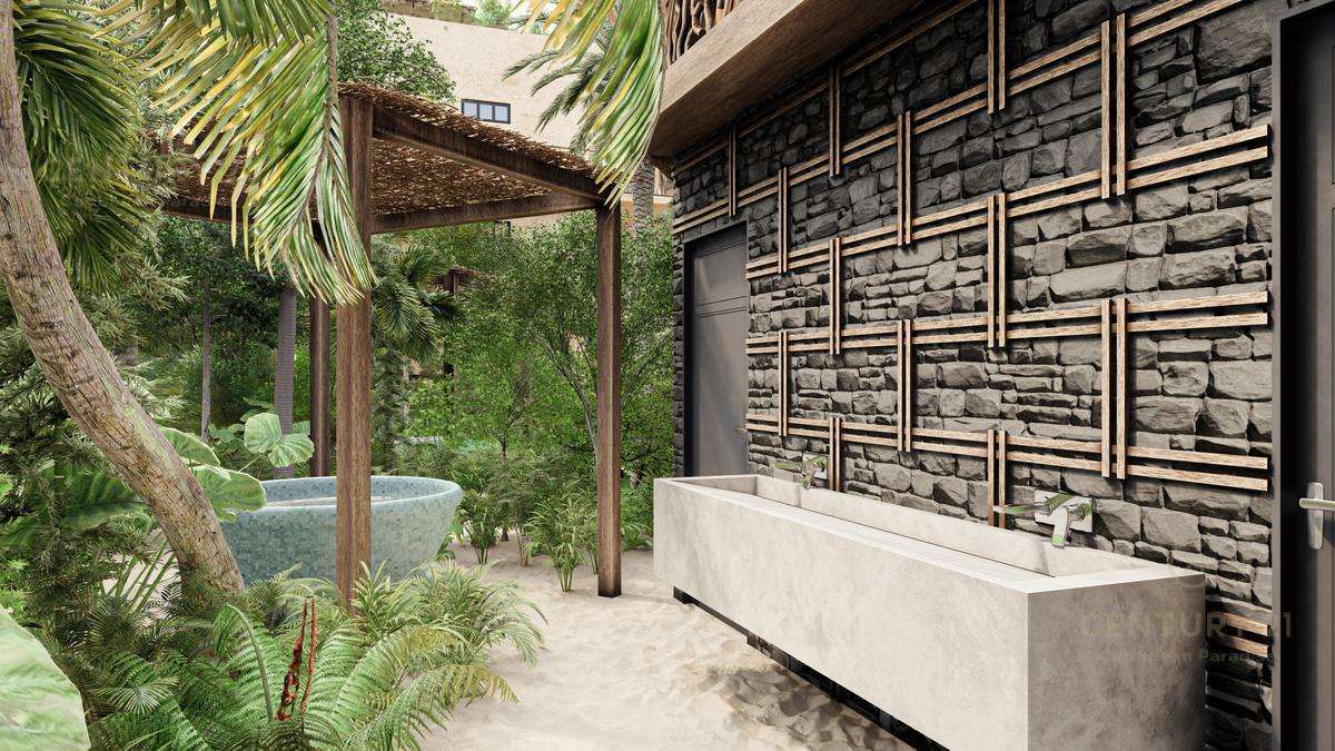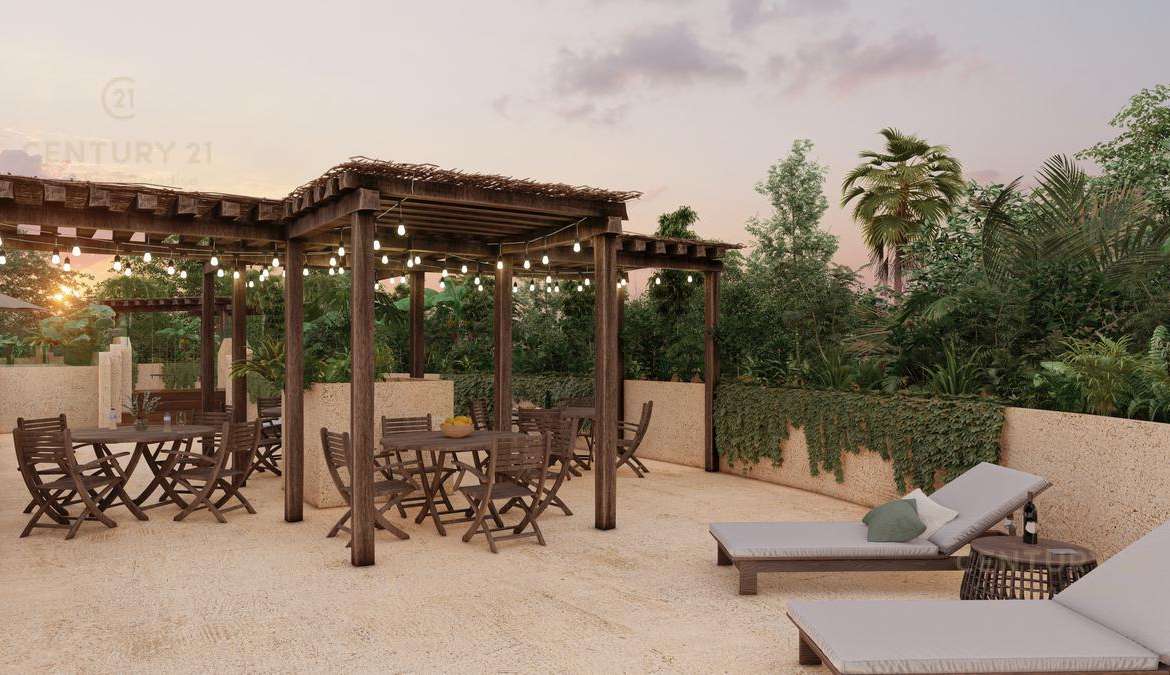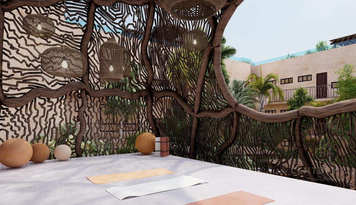 Este bello desarrollo se caracteriza por sus relajantes y confortables espacios y áreas verdes, conformados por piscina, gimnasio, roof Garden, sala de yoga, solárium, jacuzzis y mas, todo pensado para brindarte una experiencia única en Tulum