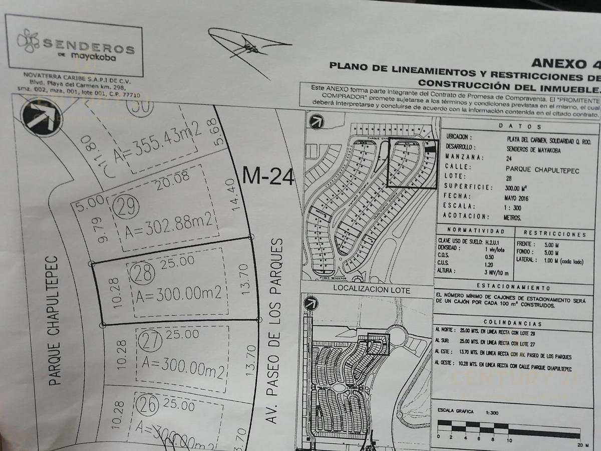 Address: Venta tereno habitacional 300m2 en residencial Senderos , residencial dentro de Ciudad Mayakoba C3179