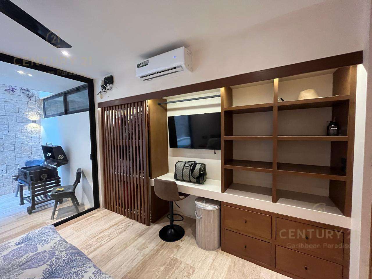 Departamento de 2 recámaras 1 baño  , cocina con barra integrada y sala,  decorado y amueblado con elementos de alta categoría. Cada dormitorio cuenta con su closet y espacio de trabajo para utilizar de escritorio y con SMART TV 4k en cada ambiente.