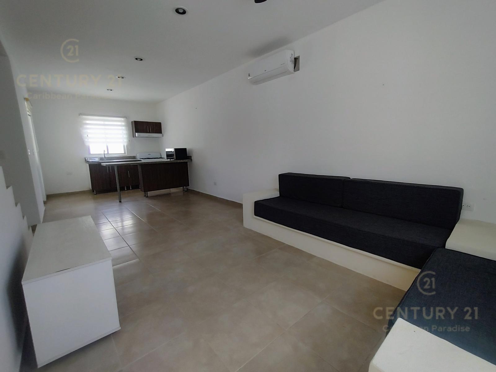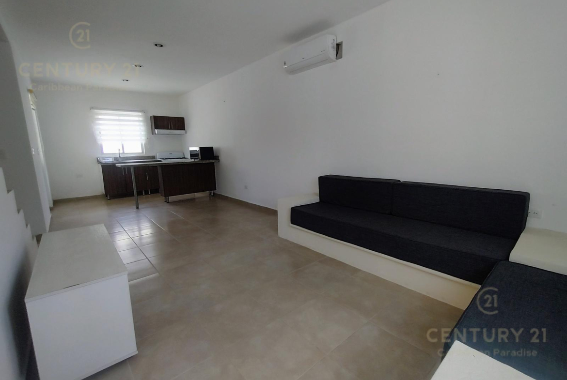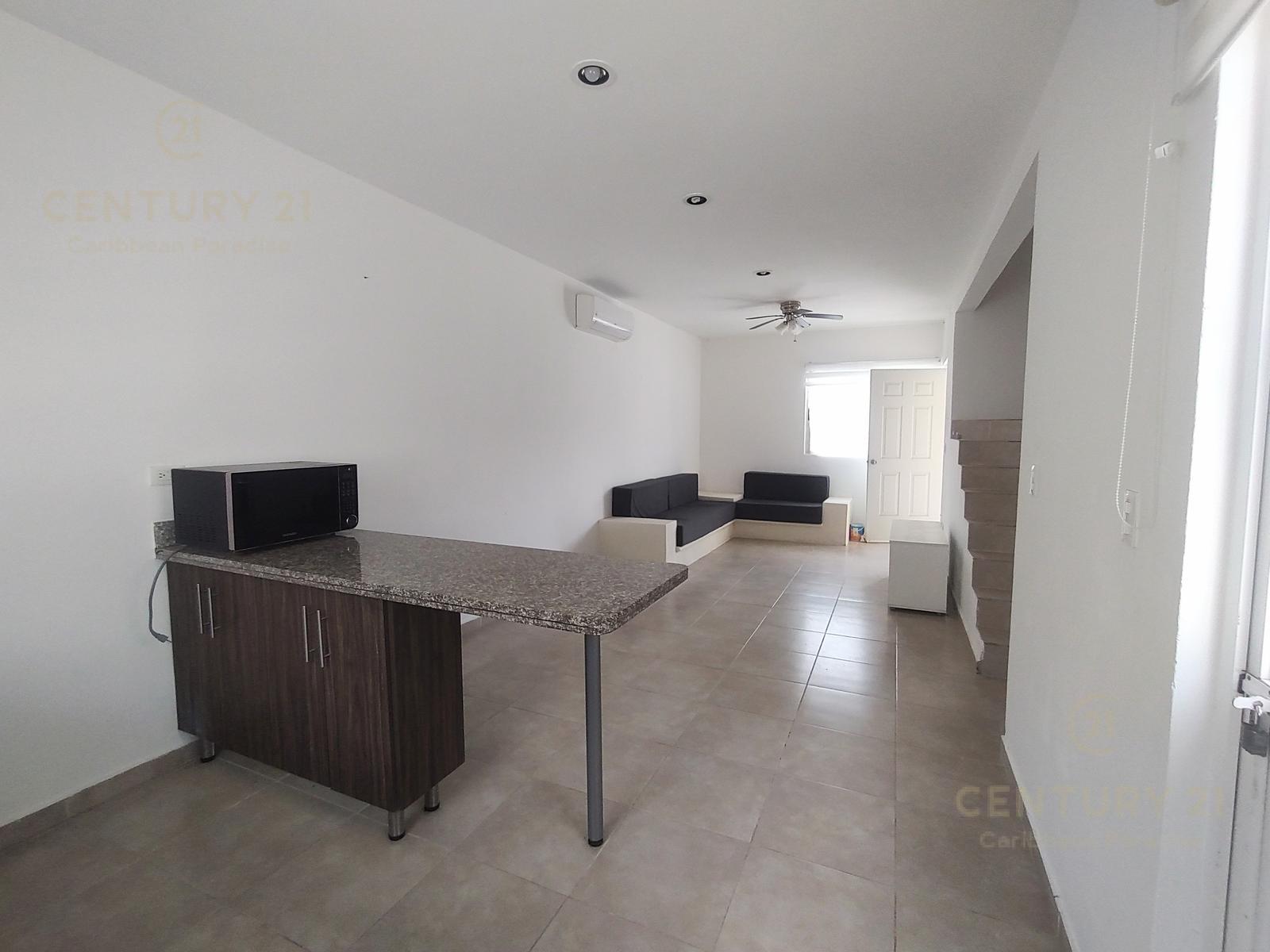 Casa en renta semi-amueblada ubicada sobre avenida principal Jacinto Pat del lado del Residencial Real del Sol, cerca de oficinas municipales, hospitales, súpermercados de prestigio, escuelas y paradero de autobuses de transporte para colaboradores de hoteles.