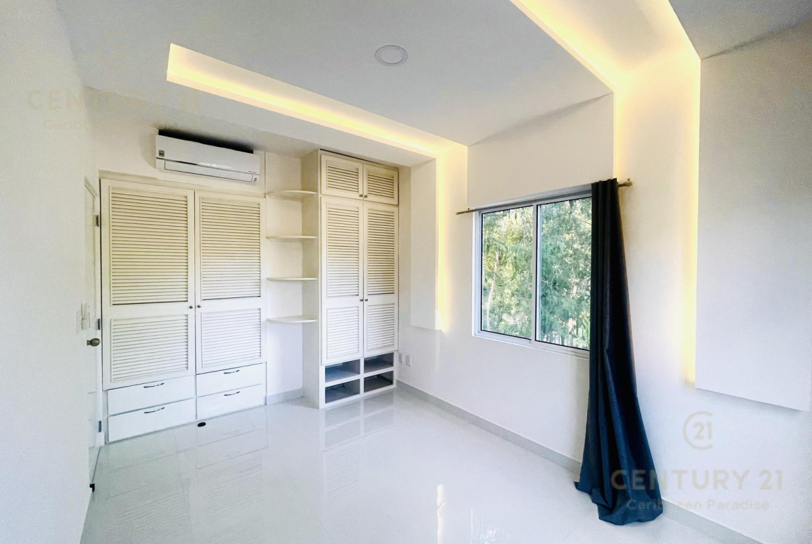 Recámara principal con closet y aire acondicionado