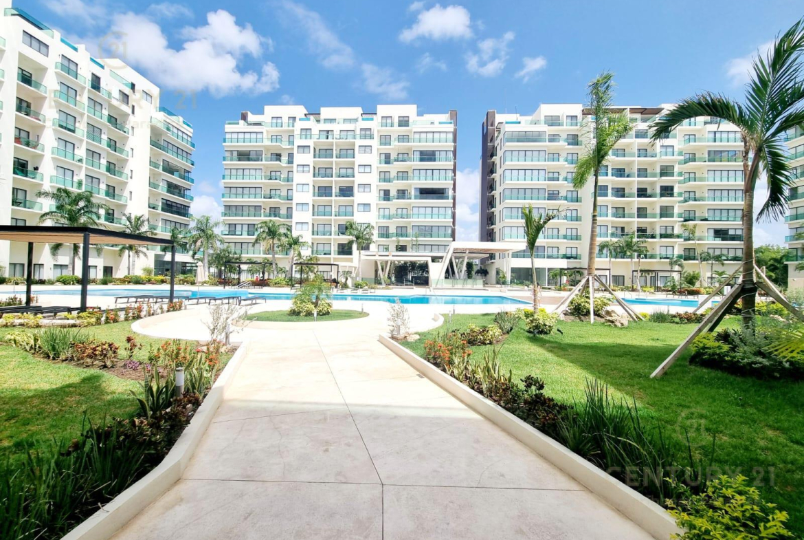 Renta lujoso departamento 2 rec. amueblado VALLE AURORA Playa del Carmen P4411