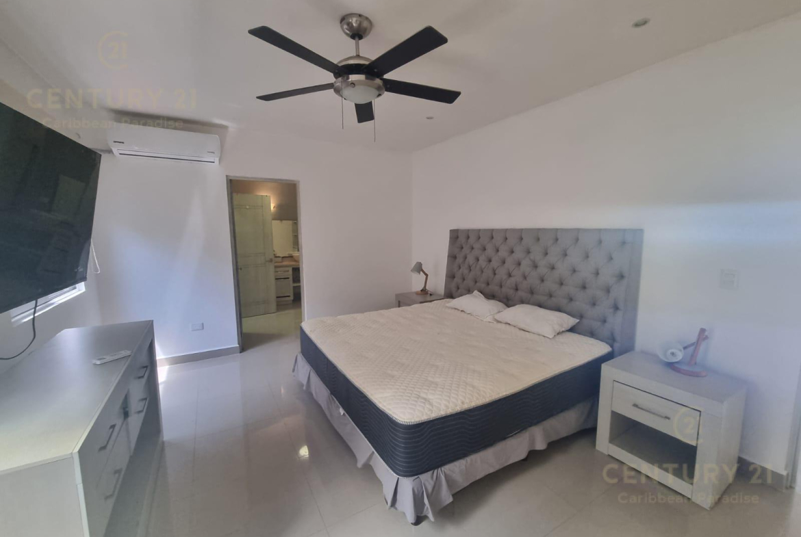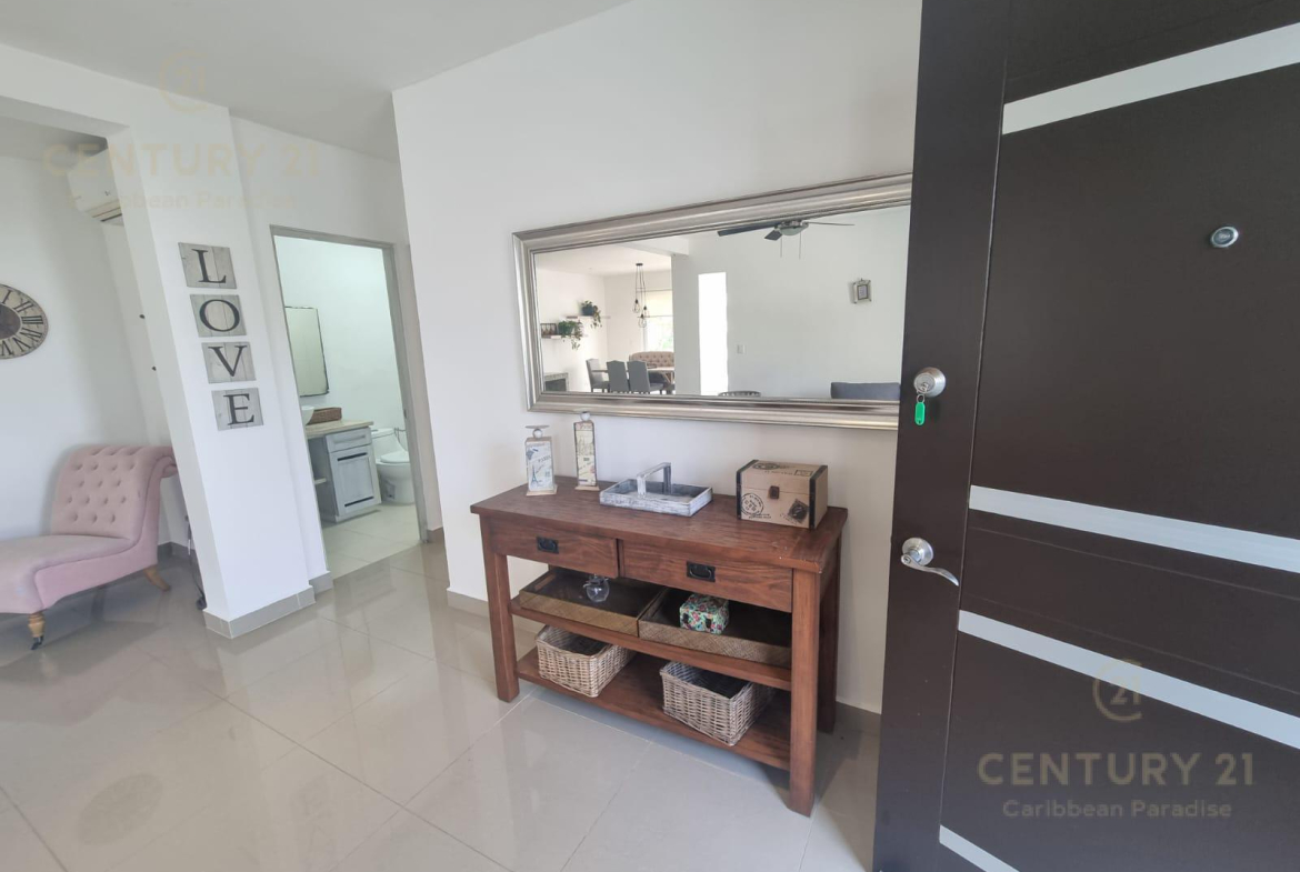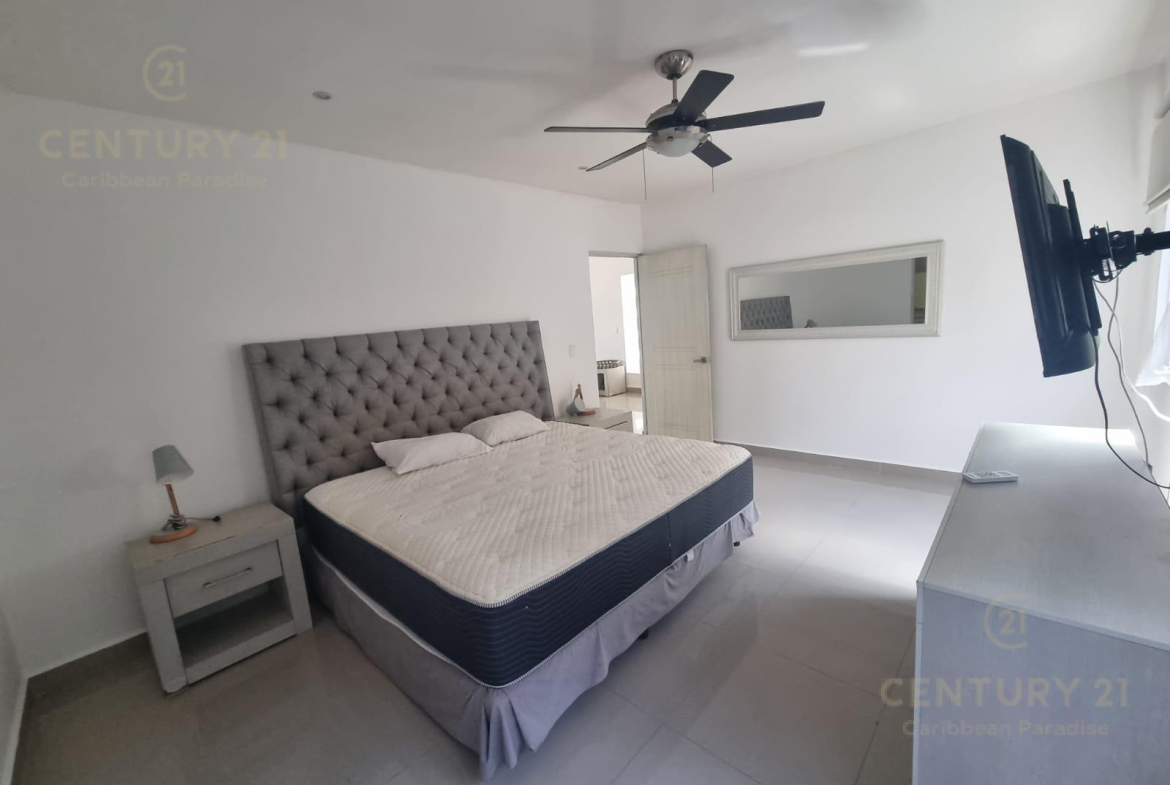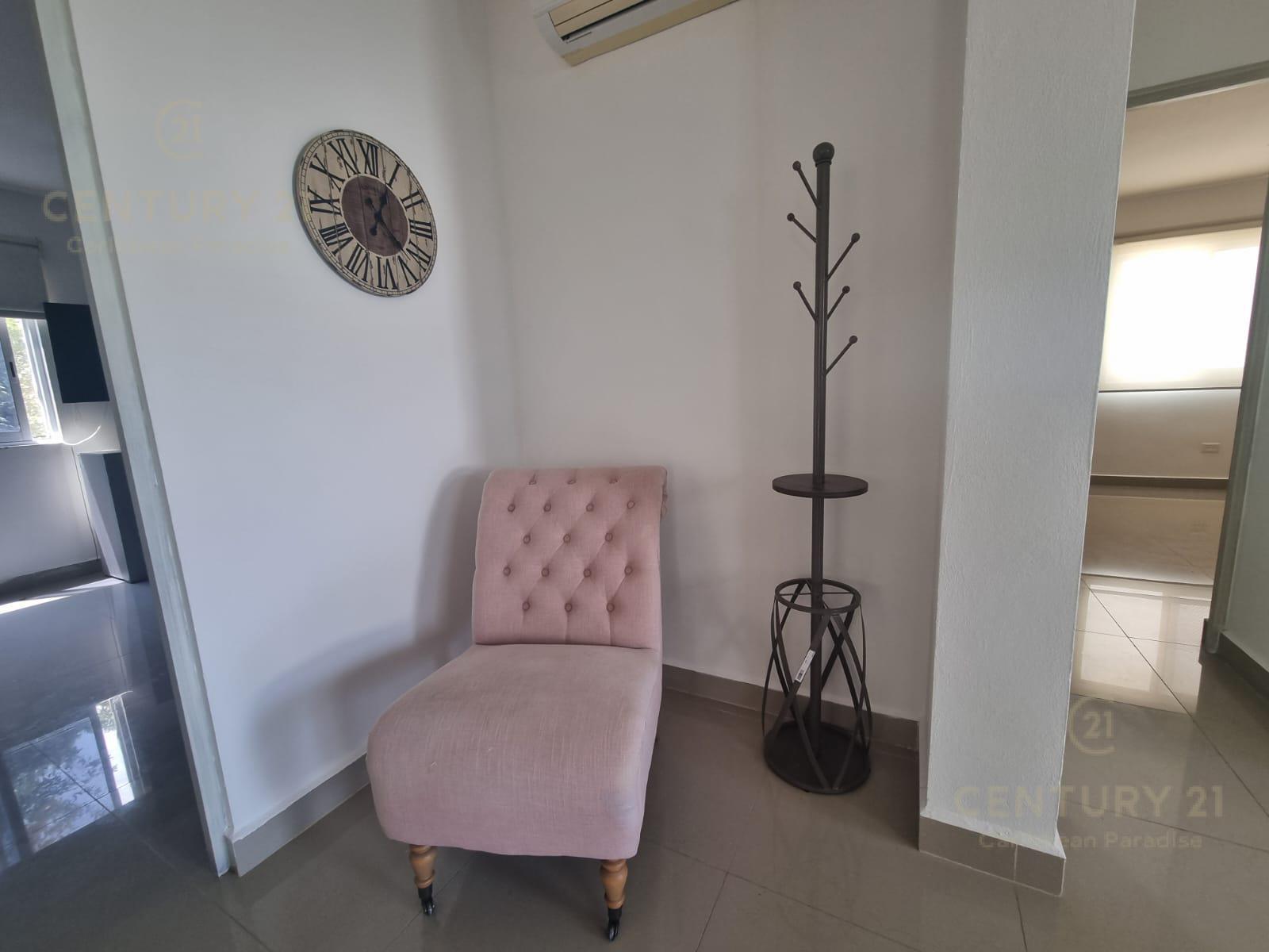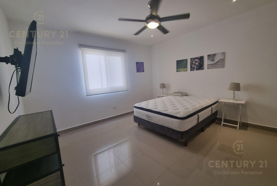 El departamento tiene 2 recámaras, 2 baños completos, un hermoso balcón. se renta amueblado con muebles modernos y de muy buen gusto, equipado con cocina integral con mesón de granito, centro de lavado, aires acondicionados, persianas black out para garantizar el descanso, mosquiteros, closet completos, Pantallas de TV.