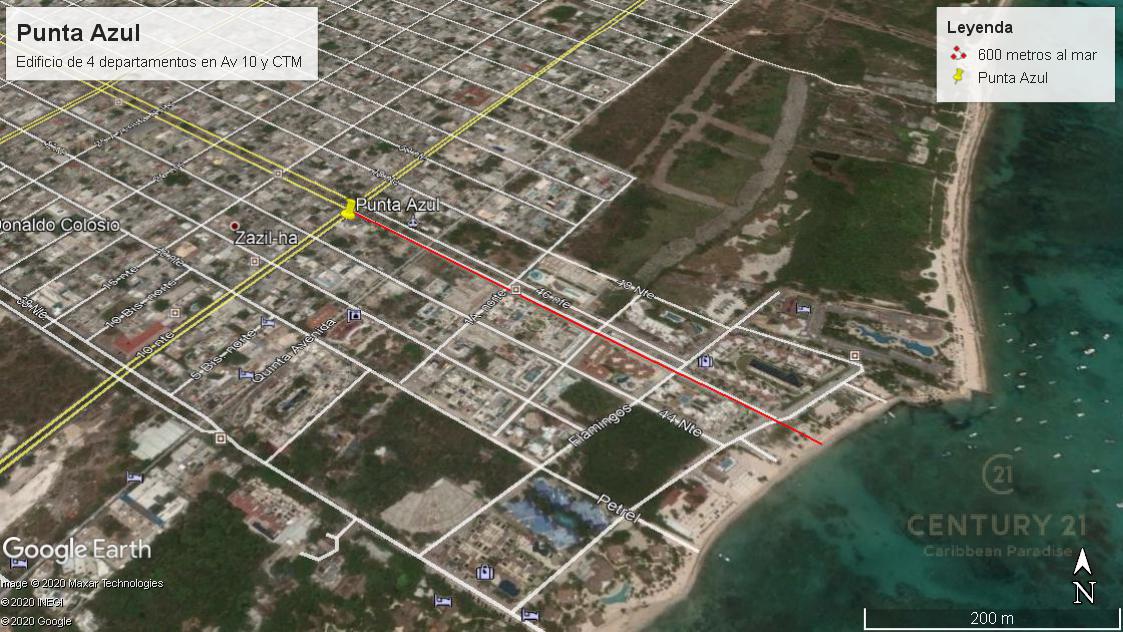 Edificio de 4 departamentos de 3 recamaras totalmente equipado y amueblado en excelente ubicación sobre la avenida 10 entre calle 44 norte y avenida CTM, a sólo 600 metros del mar.