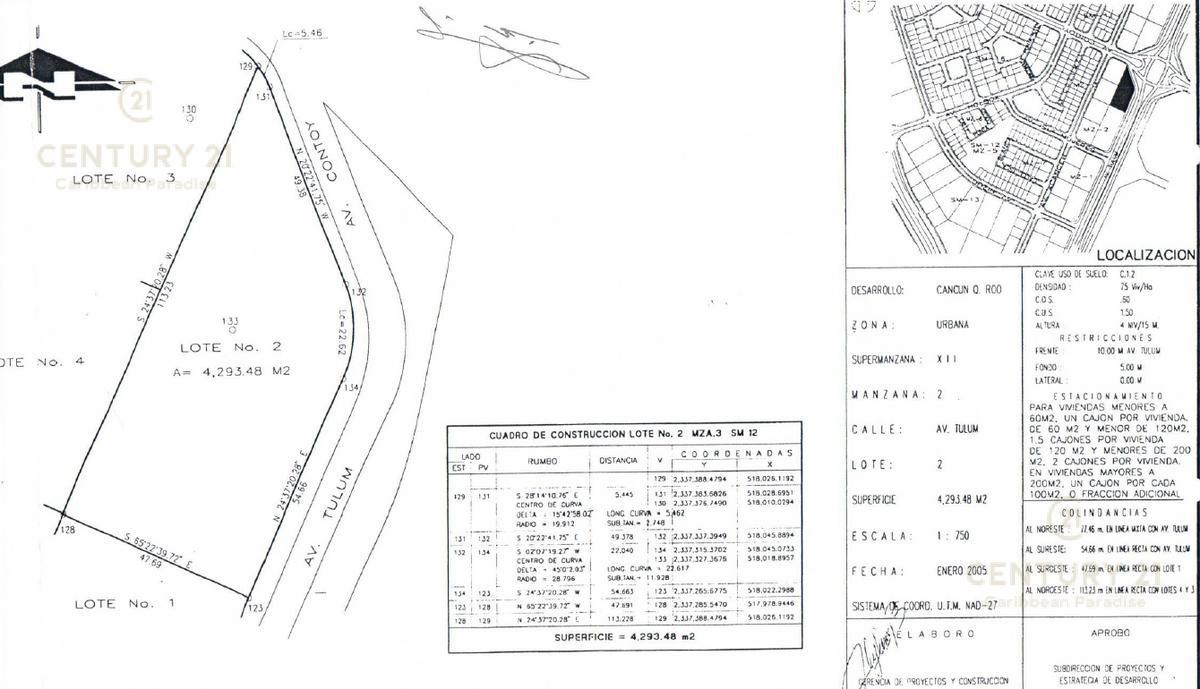 Address: Terreno en Venta en Av Tulum esquina con calle Contoy Cancún C4020