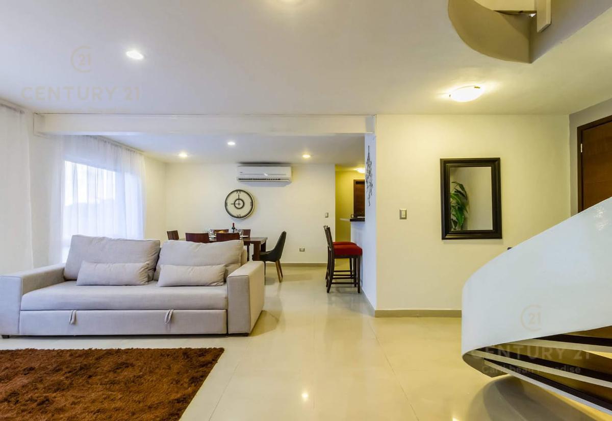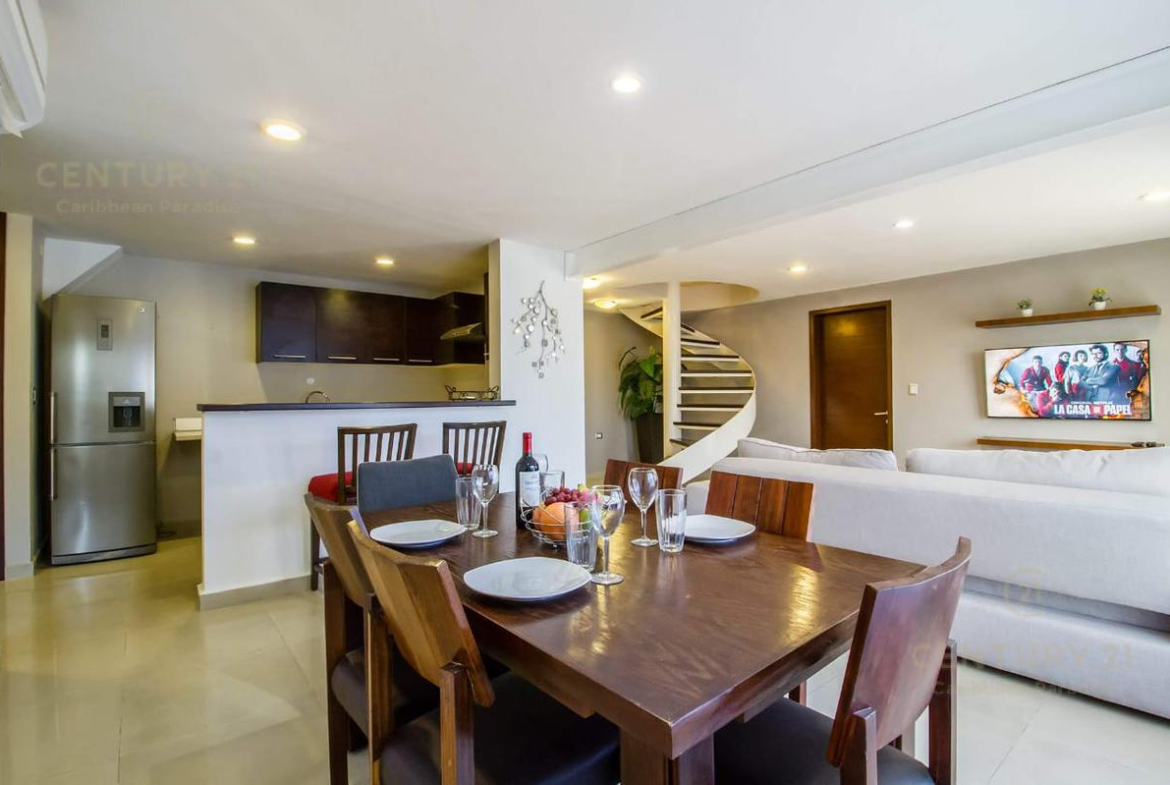 Penthouse 3 Recamaras en venta en Plaza Paraiso Playa del Carmen, ubicado a pasos de la 5ª Avenida, la playa y el ferry a Cozumel. Esta propiedad de 3 recámaras y 3 baños ofrece una experiencia única con rooftop privado, plunge pool y amplios espacios totalmente amueblados y equipados. Ideal para inversión inmobiliaria, ya que permite generar altos ingresos por rentas vacacionales o a largo plazo. El Penthouse incluye amenidades como: alberca, asoleadero, camastros, estacionamiento, cámaras de vigilancia, acceso controlado y seguridad 24/7.