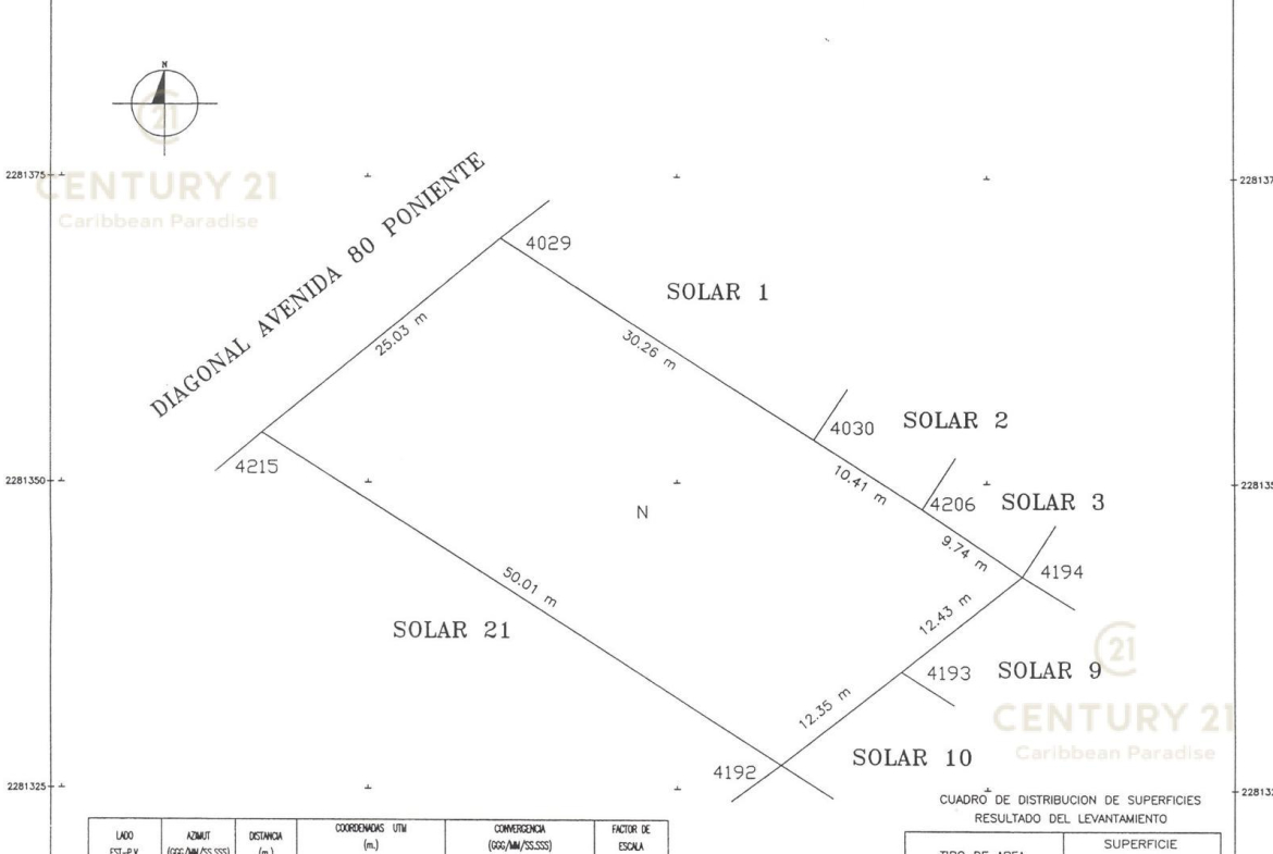 Tiene 25 m2 de frente sobre avenida 80 Diagonal, y 50 m de fondo. El terreno es irregular. Ubicado entre avenida Juarez y calle 2 norte.
