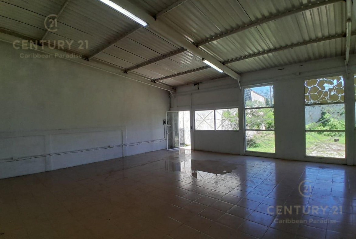 Bodega con amplio patio para maniobras, construida en metal, concreto, techo de lamina, y cristal en puerta y ventanas al frente. Cuenta con espacios definidos para oficinas, baños, sala de exhibiciòn o de taller. Su techo de 6 metros de altura la hace muy practica para manejar productos voluminosos. El acceso desde la carretera Colosio está resguardado por un pórton de fierro de grueso calibre con baja pendiete de ambos lados para permitir desembarques de vehiculos de plataforma.