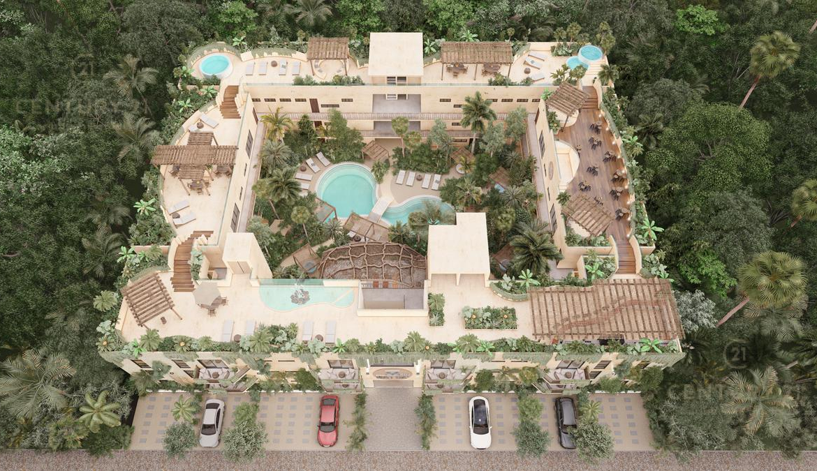 Este bello desarrollo se caracteriza por sus relajantes y confortables spacios y áreas verdes, conformados por piscina, gimnasio, roof garden, sala de yoga, solarium, jacuzzis y mas, todo pensado para brindarte una experiencia unica en Tulum