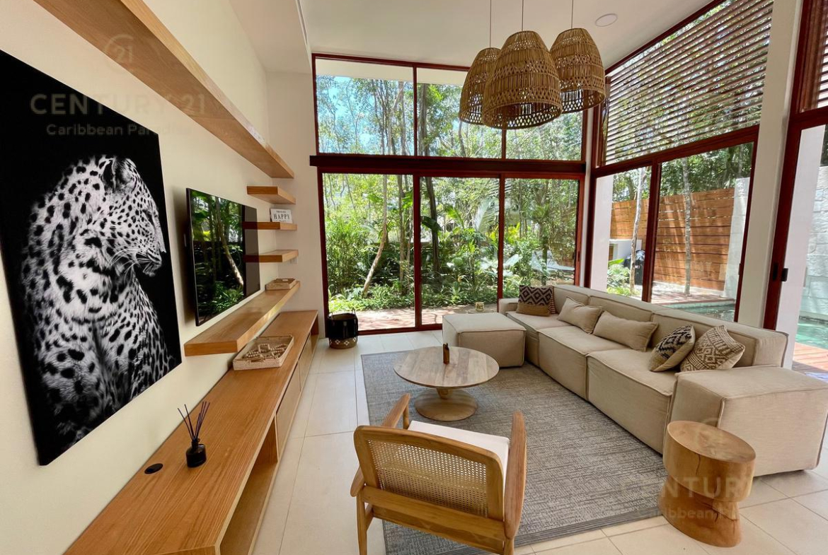 Hermosa casa totalmente amueblada con excelente distribucion de espacios, cuenta con una habitacion en planta baja con baño completo, la habitacion principal conwalking closet y baño completo, estudio con terraza, habitacion secundaria con su cloaset y baño completo, descubre esta magnífica casa, diseñada para ofrecer una experiencia de vida armónica, relajada y en contacto directo con la naturaleza, dentro de una de las comunidades más exclusivas de Playa del Carmen: Ciudad Mayakoba.