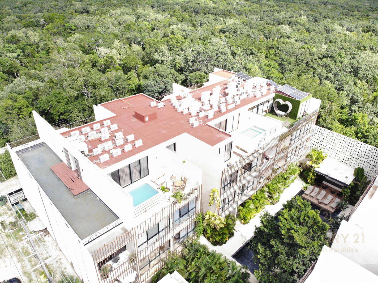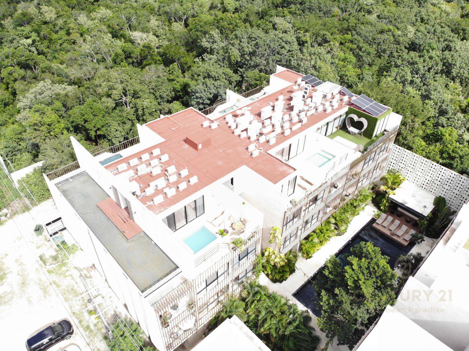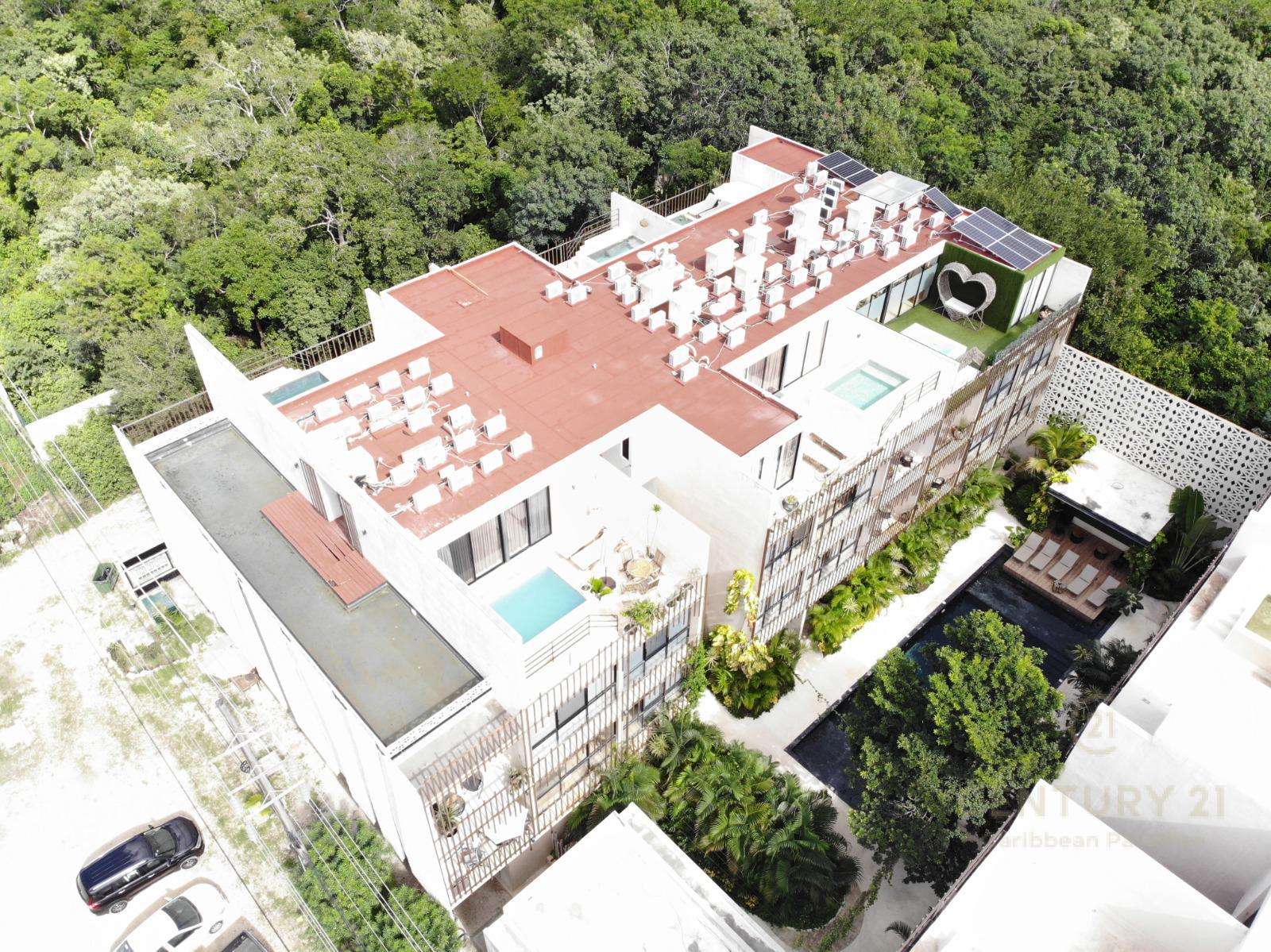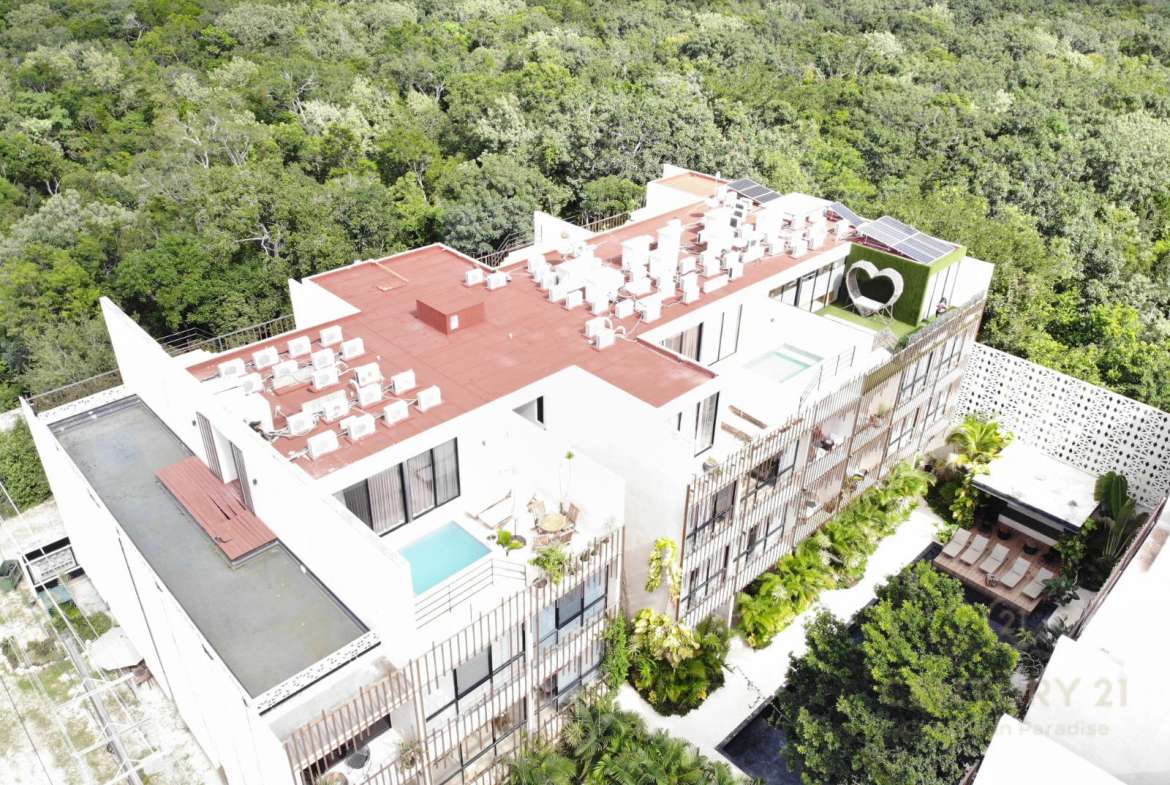 Este exclusivo departamento cuenta con un roof top que incluye una pequeña alberca, ubicado en una de las 2 torres de 3 niveles en Avenida Cobá, una de las zonas con mayor proyección en Tulum. A solo minutos del Mar Caribe y rodeado de los mejores restaurantes, boutiques, clubes y todos los servicios necesarios para una vida plena.