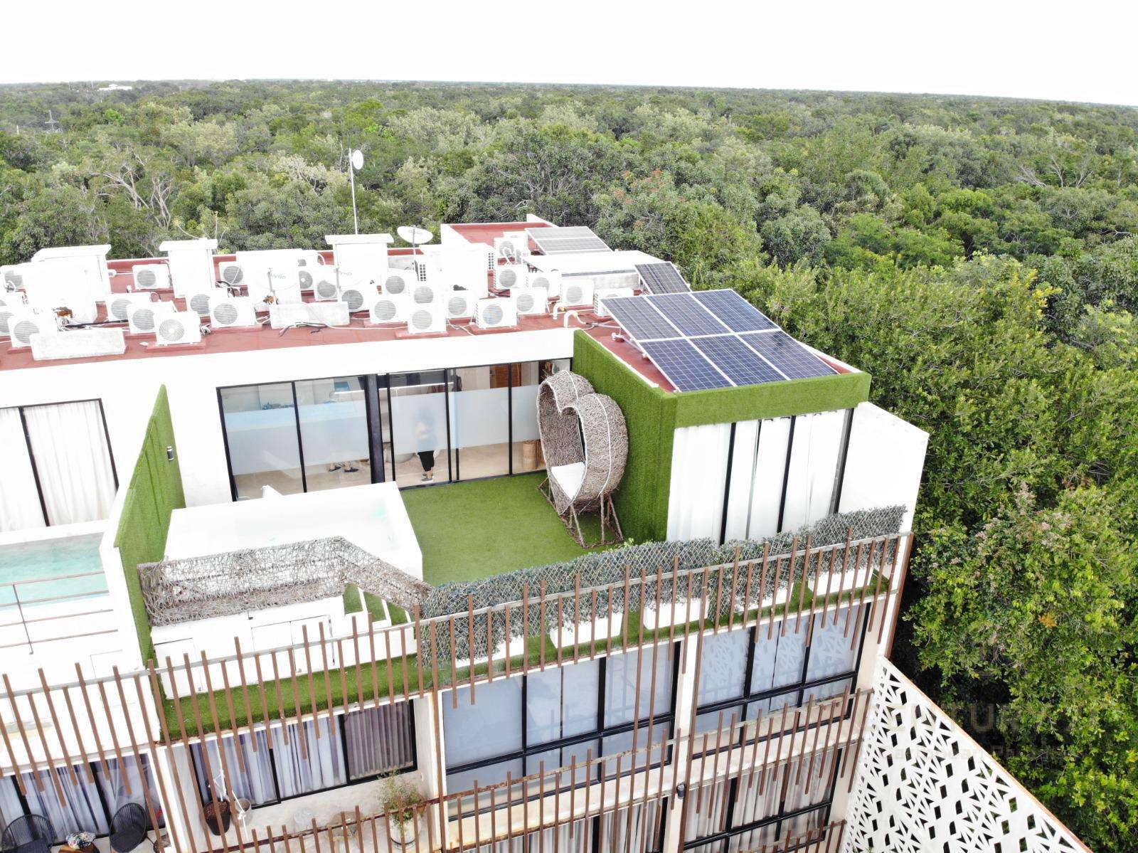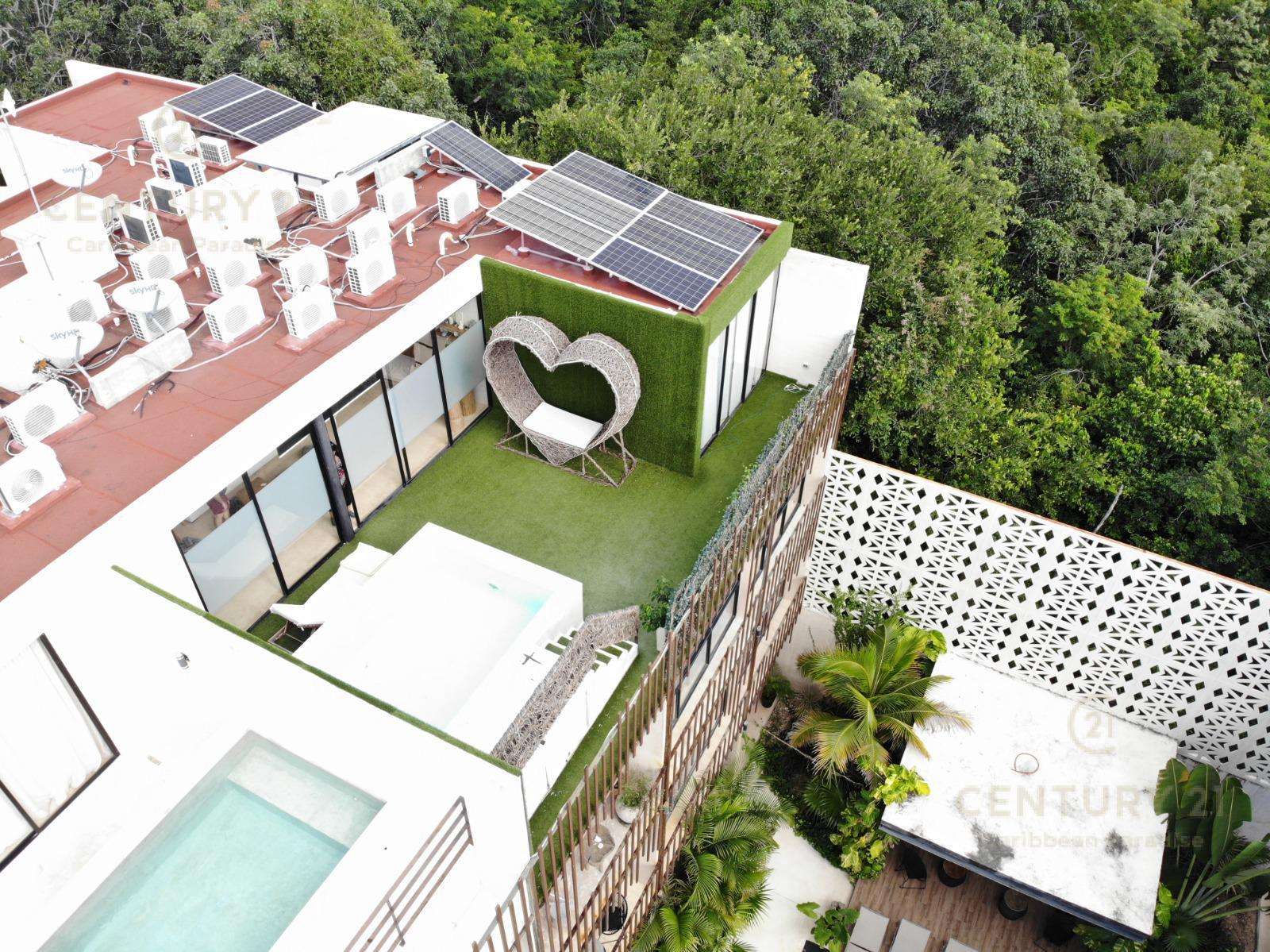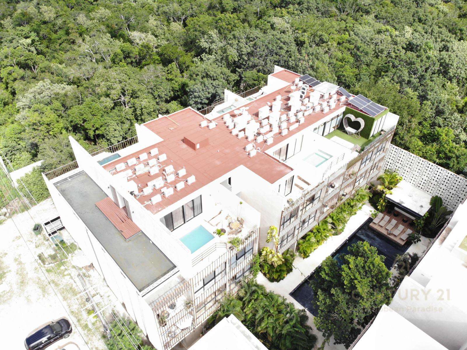 Este exclusivo departamento cuenta con un roof top que incluye una pequeña alberca, ubicado en una de las 2 torres de 3 niveles en Avenida Cobá, una de las zonas con mayor proyección en Tulum. A solo minutos del Mar Caribe y rodeado de los mejores restaurantes, boutiques, clubes y todos los servicios necesarios para una vida plena.
