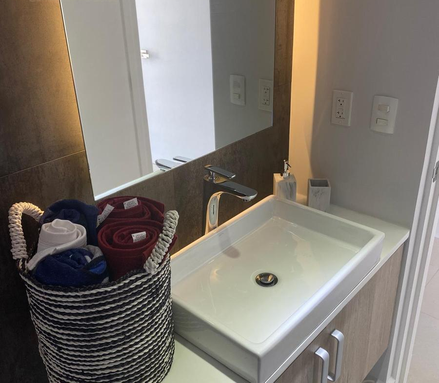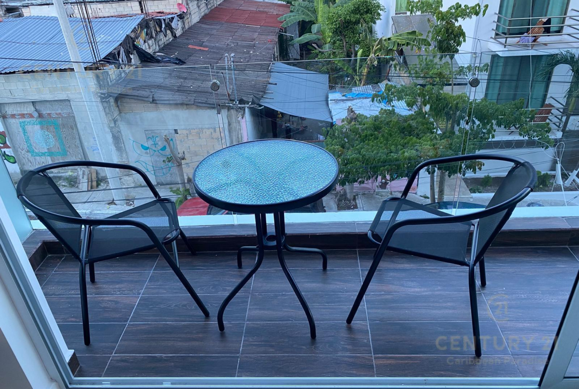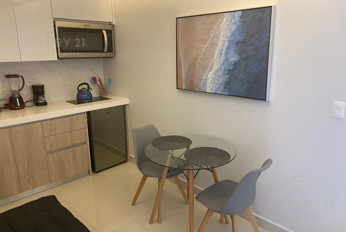 El departamento se encuentra en la primera planta de 5. Se vende amueblado y equipado, con 1 recámara con cama King Size y aire acondicionado, 1 baño, Cocina y Sala y balcón