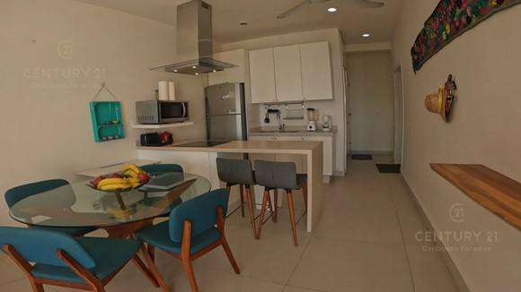 Practico departamento para vivir, vacaciones, rentas, lo que tu gustes, administración libre, de entrega inmediata, totalmente amueblado, ubicación premium con vista al mar desde el balcón de la unidad, y desde el roof top de la alberca infinita, a solo pasos de la playa.